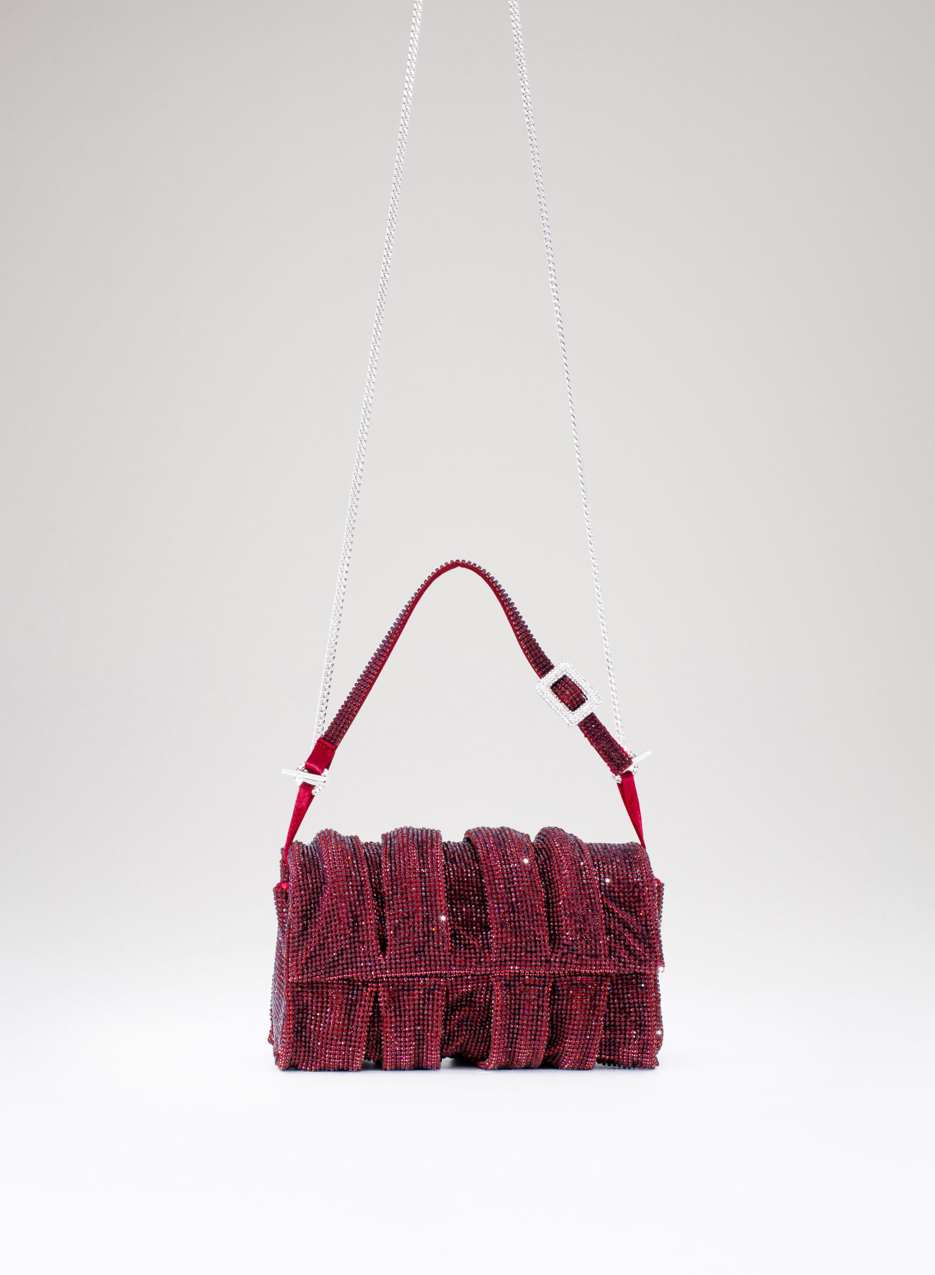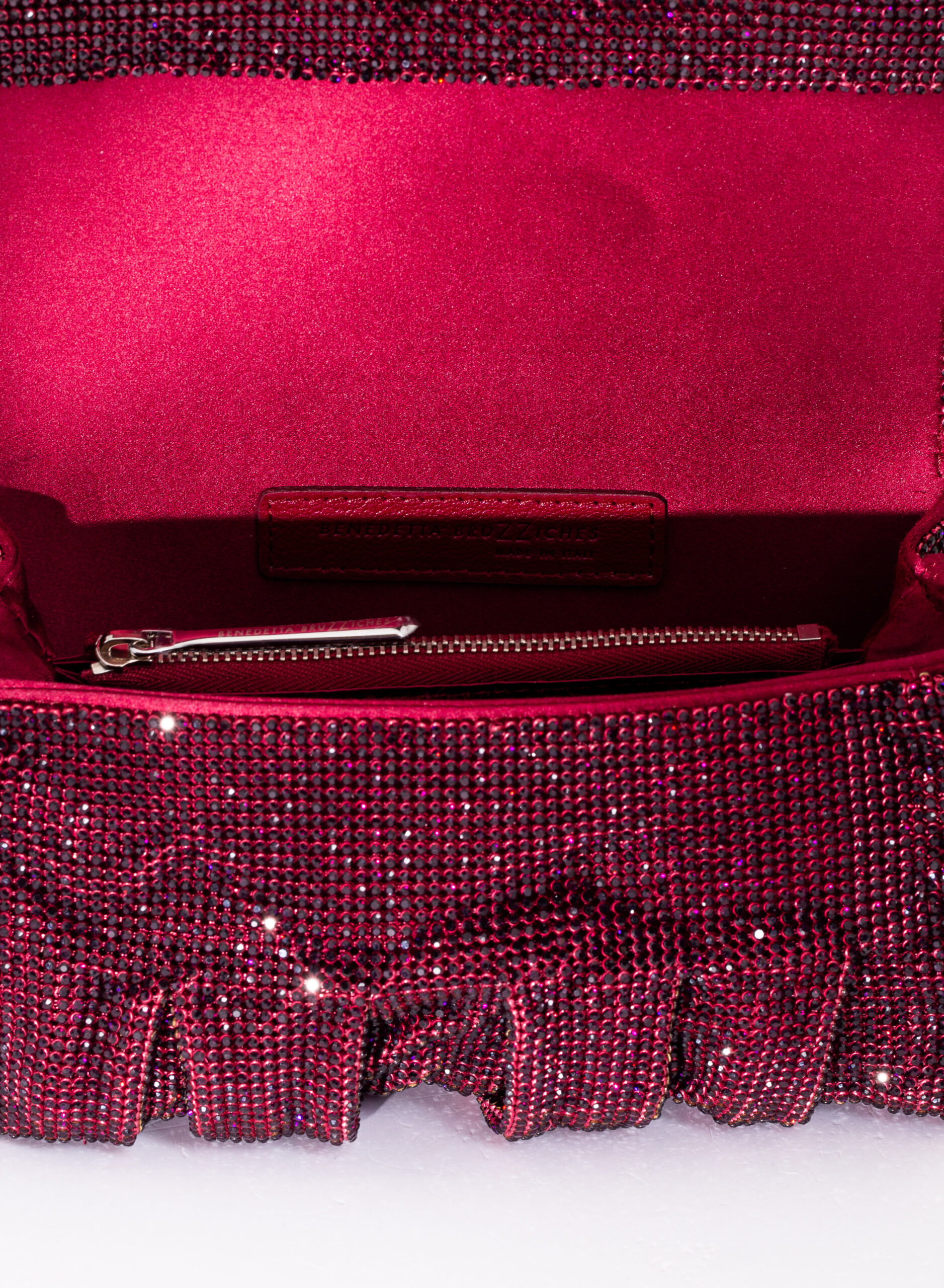 External: 100% Aluminium mesh studded with crystal rhinestones