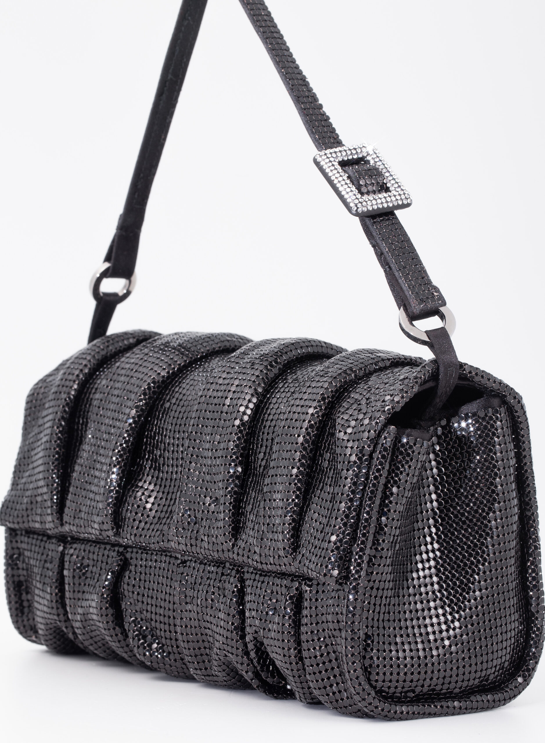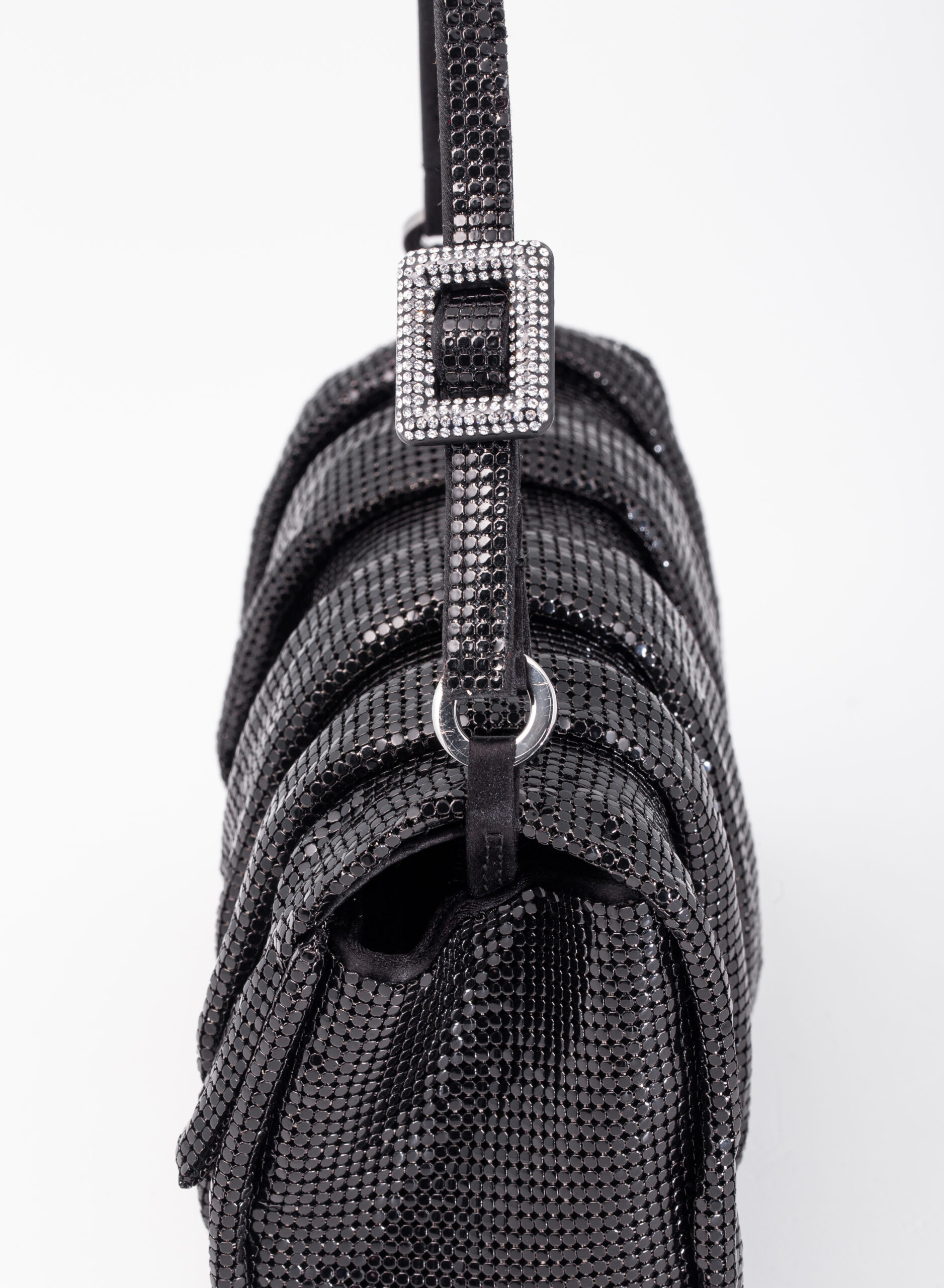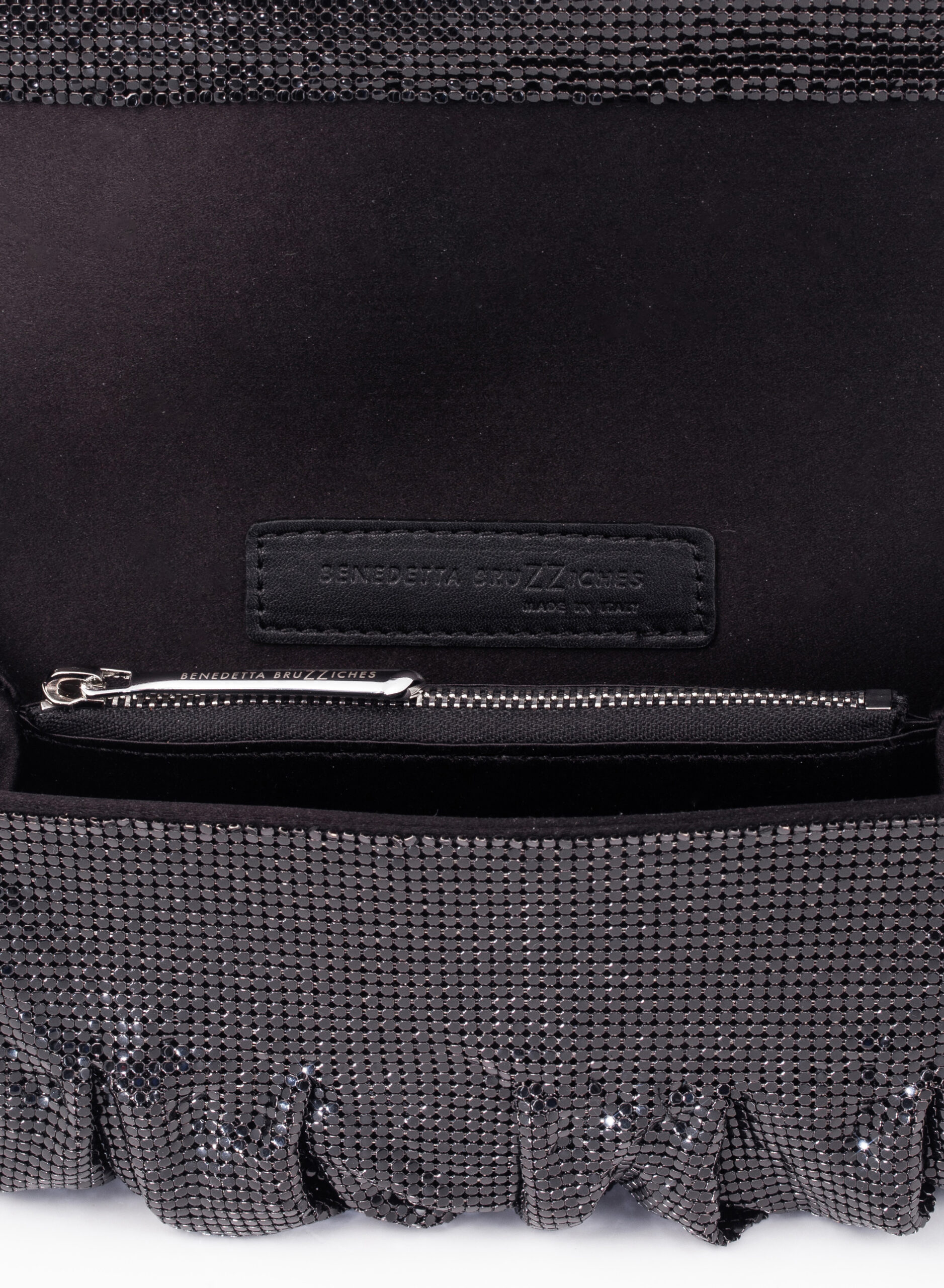 Iris is named after Iris Apfel, that lady with the oversized glasses who, without ever raising her voice, taught the world the rarest art of all: being amazed by oneself. Like her, this bag does not follow the rules: it gracefully rewrites them. It’s soft, compact, crafted from silk and crystal mesh. An essential treasure chest, designed to hold more than it lets on: your phone, a cardholder, a lipstick, your keys — and that little secret every woman carries with her. Small on the outside, surprisingly organized within — like those kind souls who manage to make space, even when it seems there’s none left. It comes with two straps: a short handle to keep it close, and a longer one for when you want to feel free. Because Iris knows: elegance is the balance between holding on and letting go. She’s not made for the occasion. She creates it. On the velvet couches of a party among friends, under the dim light of an art-house cinema, between the clinking glasses of a night that needs no explanation. Wherever she goes, Iris opens a path of quiet light, reminding us that elegance is not volume, but rhythm. Not noise, but resonance. It’s what remains — even after everything else has passed.