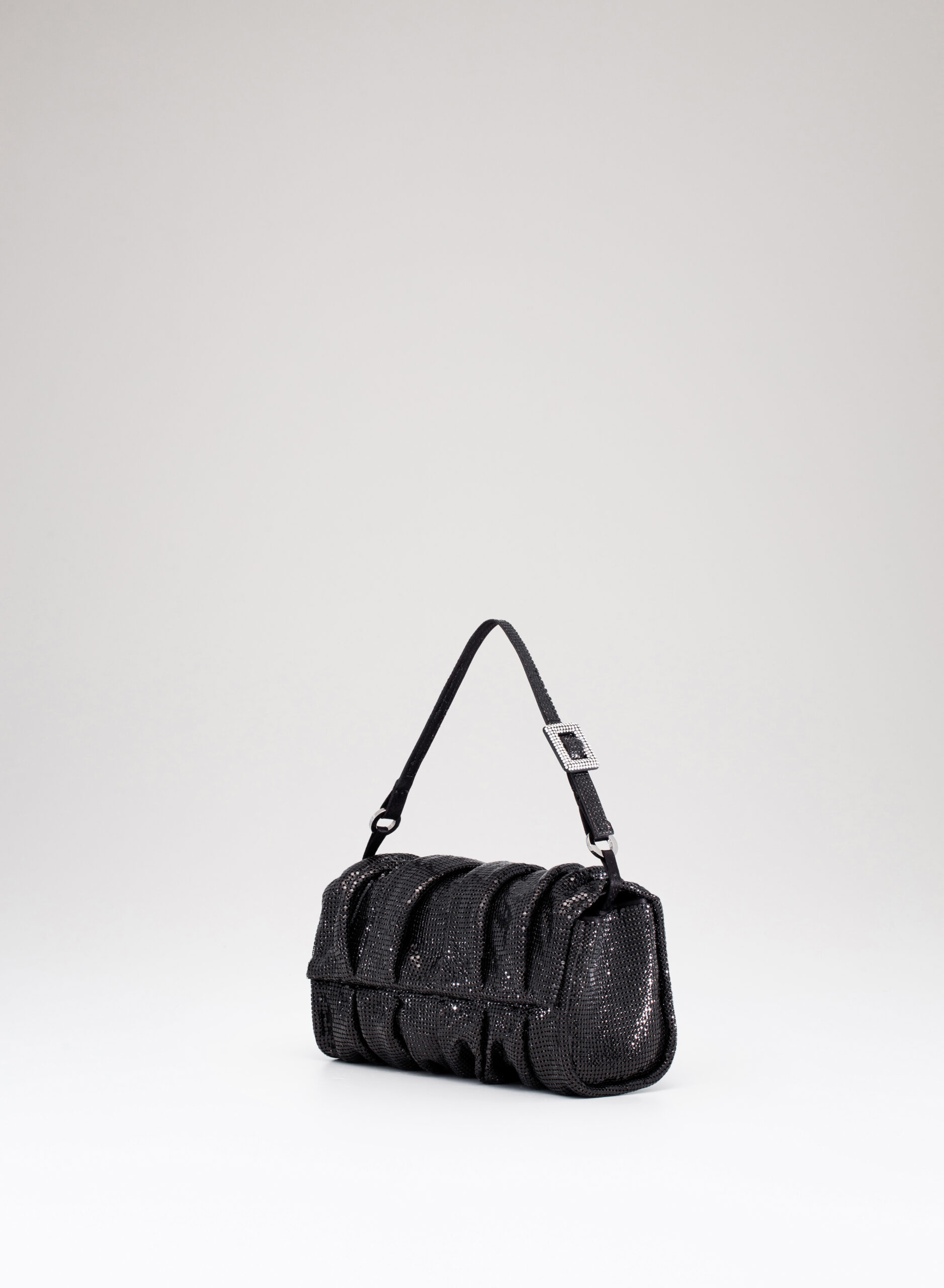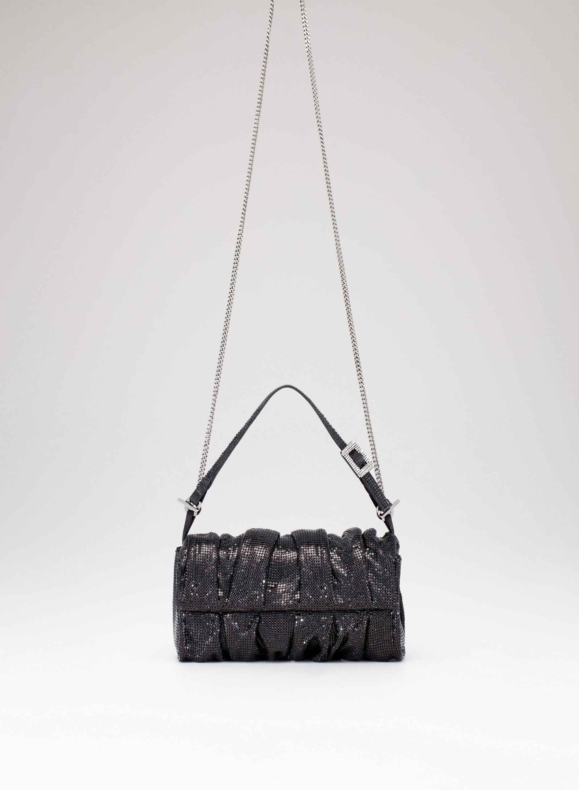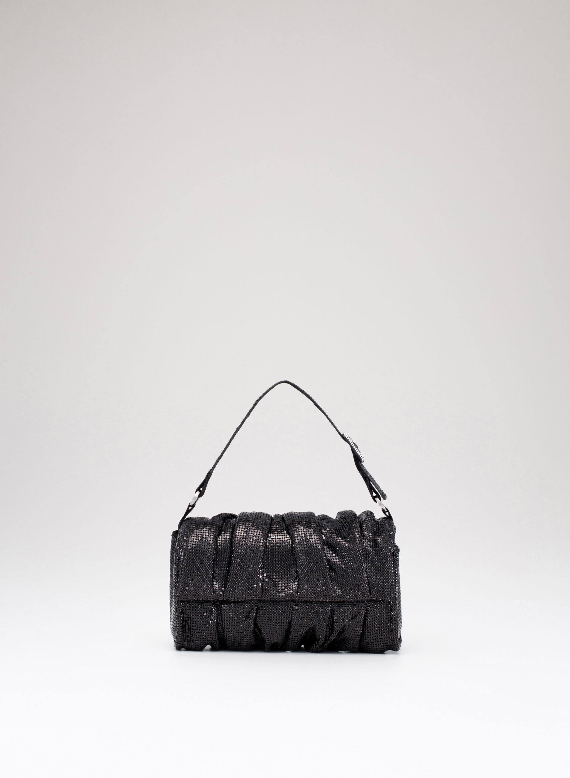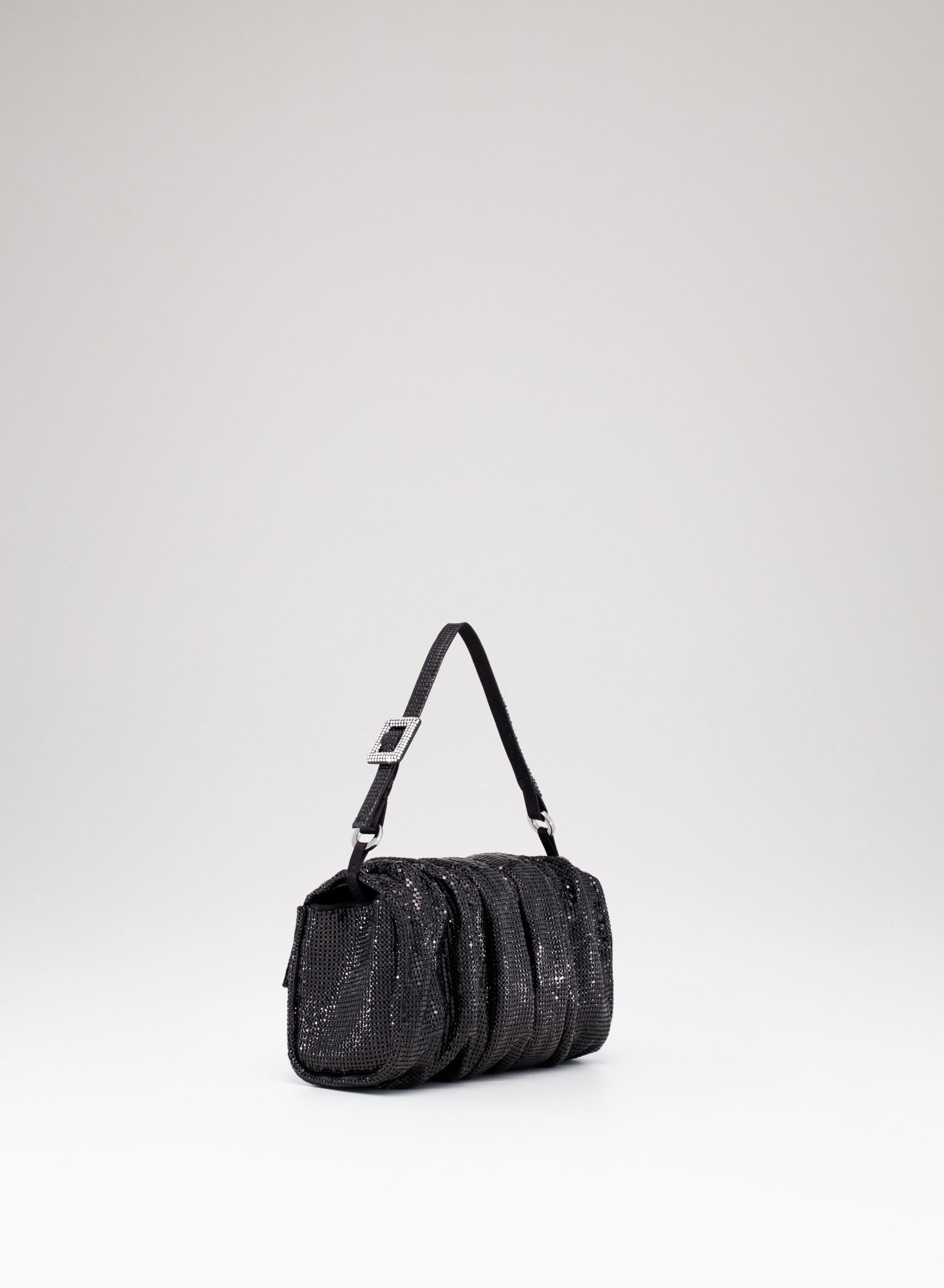 Iris is named after Iris Apfel, that lady with the oversized glasses who, without ever raising her voice, taught the world the rarest art of all: being amazed by oneself. Like her, this bag does not follow the rules: it gracefully rewrites them. It’s soft, compact, crafted from silk and crystal mesh. An essential treasure chest, designed to hold more than it lets on: your phone, a cardholder, a lipstick, your keys — and that little secret every woman carries with her. Small on the outside, surprisingly organized within — like those kind souls who manage to make space, even when it seems there’s none left. It comes with two straps: a short handle to keep it close, and a longer one for when you want to feel free. Because Iris knows: elegance is the balance between holding on and letting go. She’s not made for the occasion. She creates it. On the velvet couches of a party among friends, under the dim light of an art-house cinema, between the clinking glasses of a night that needs no explanation. Wherever she goes, Iris opens a path of quiet light, reminding us that elegance is not volume, but rhythm. Not noise, but resonance. It’s what remains — even after everything else has passed.