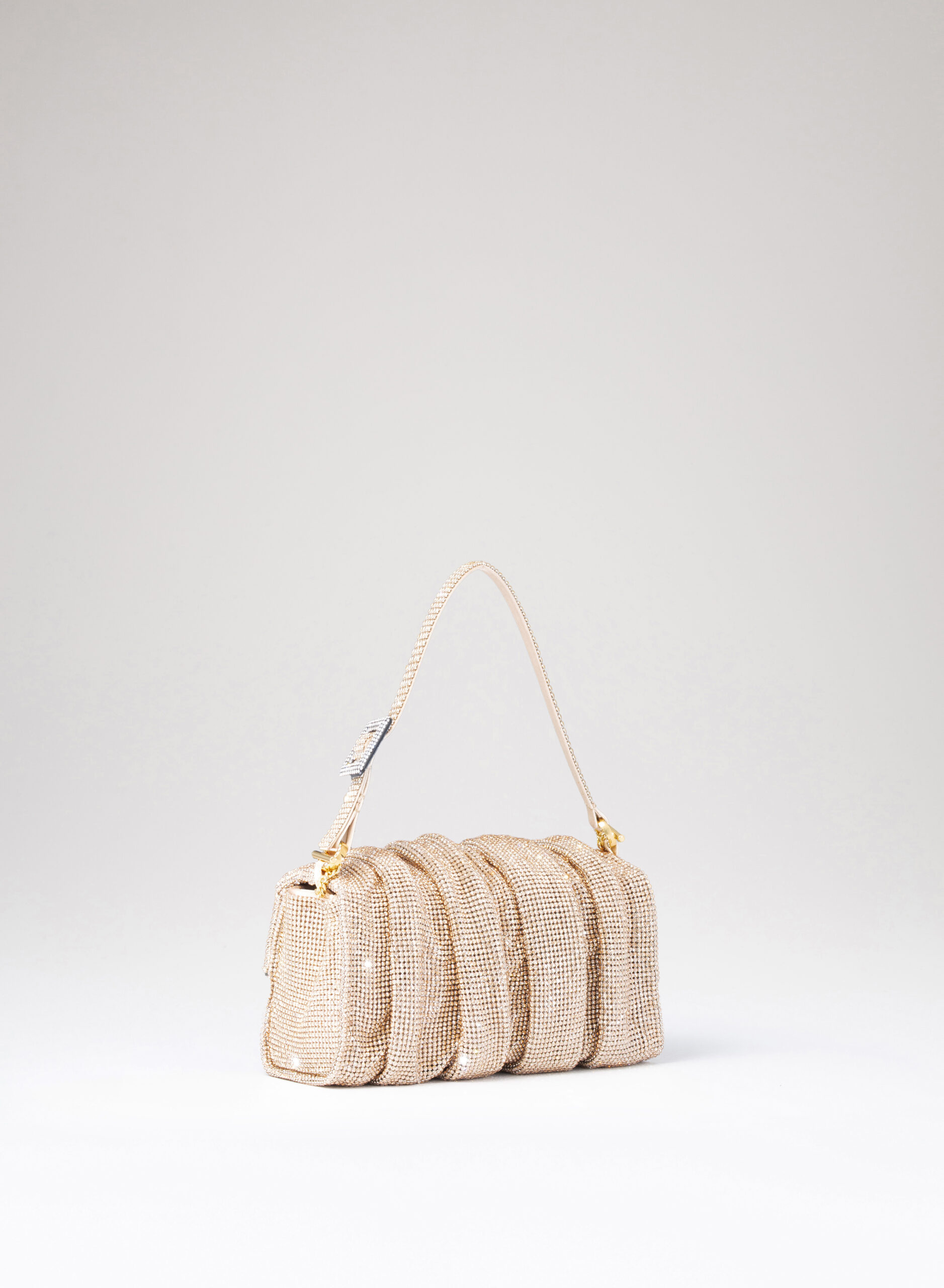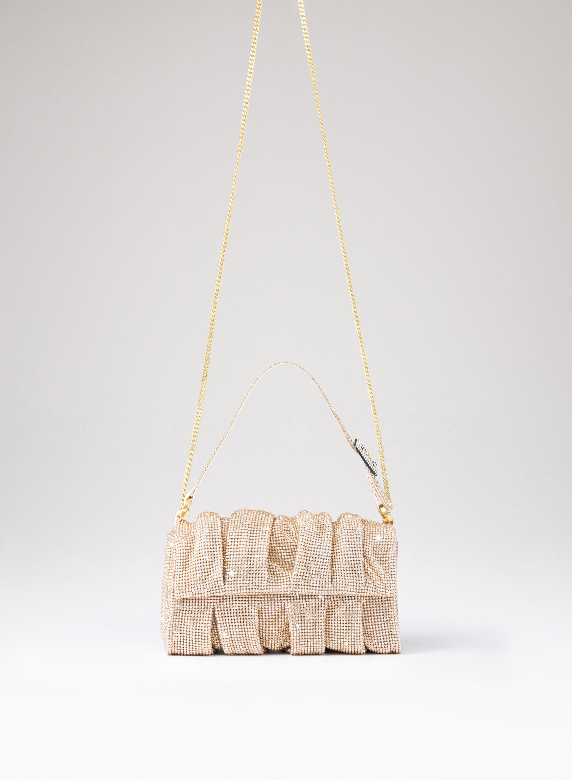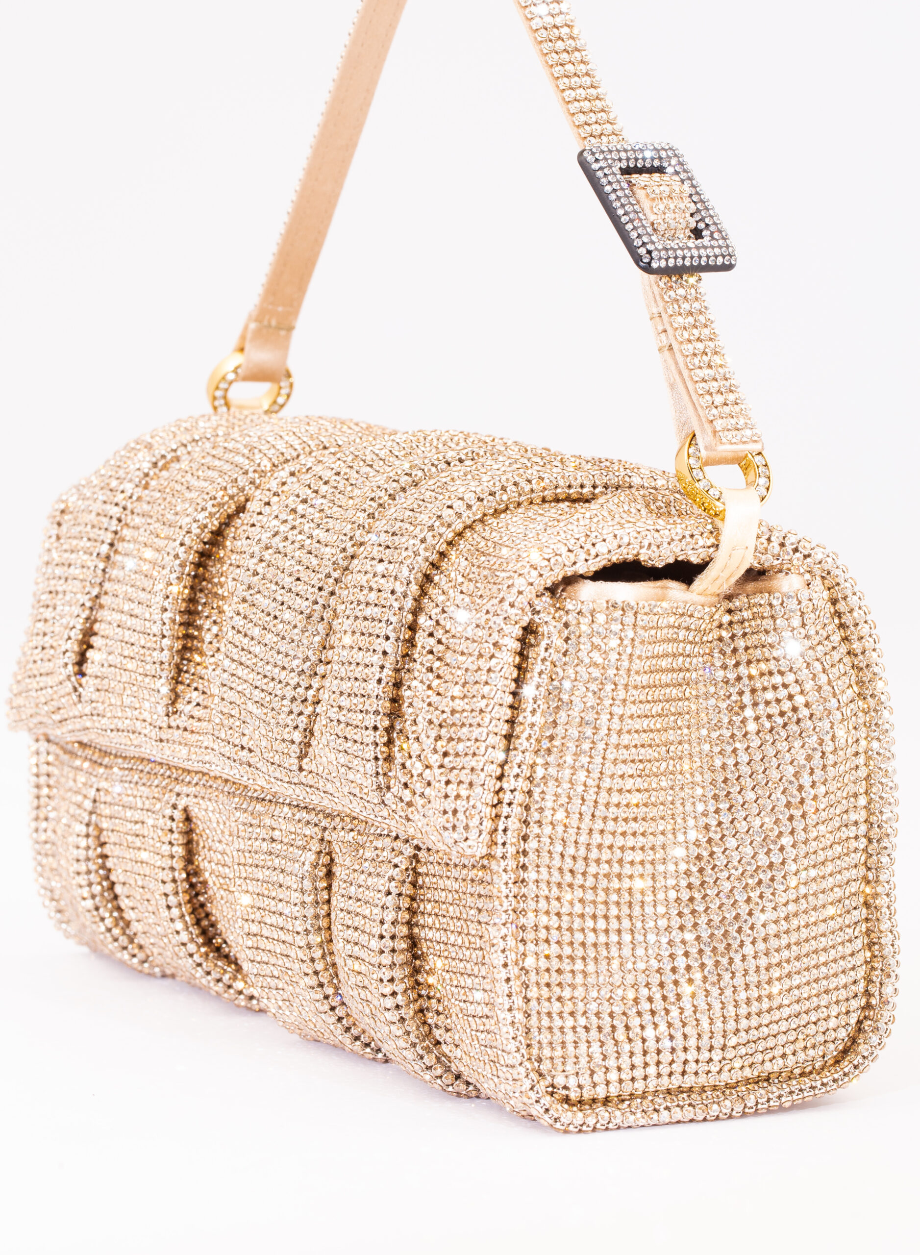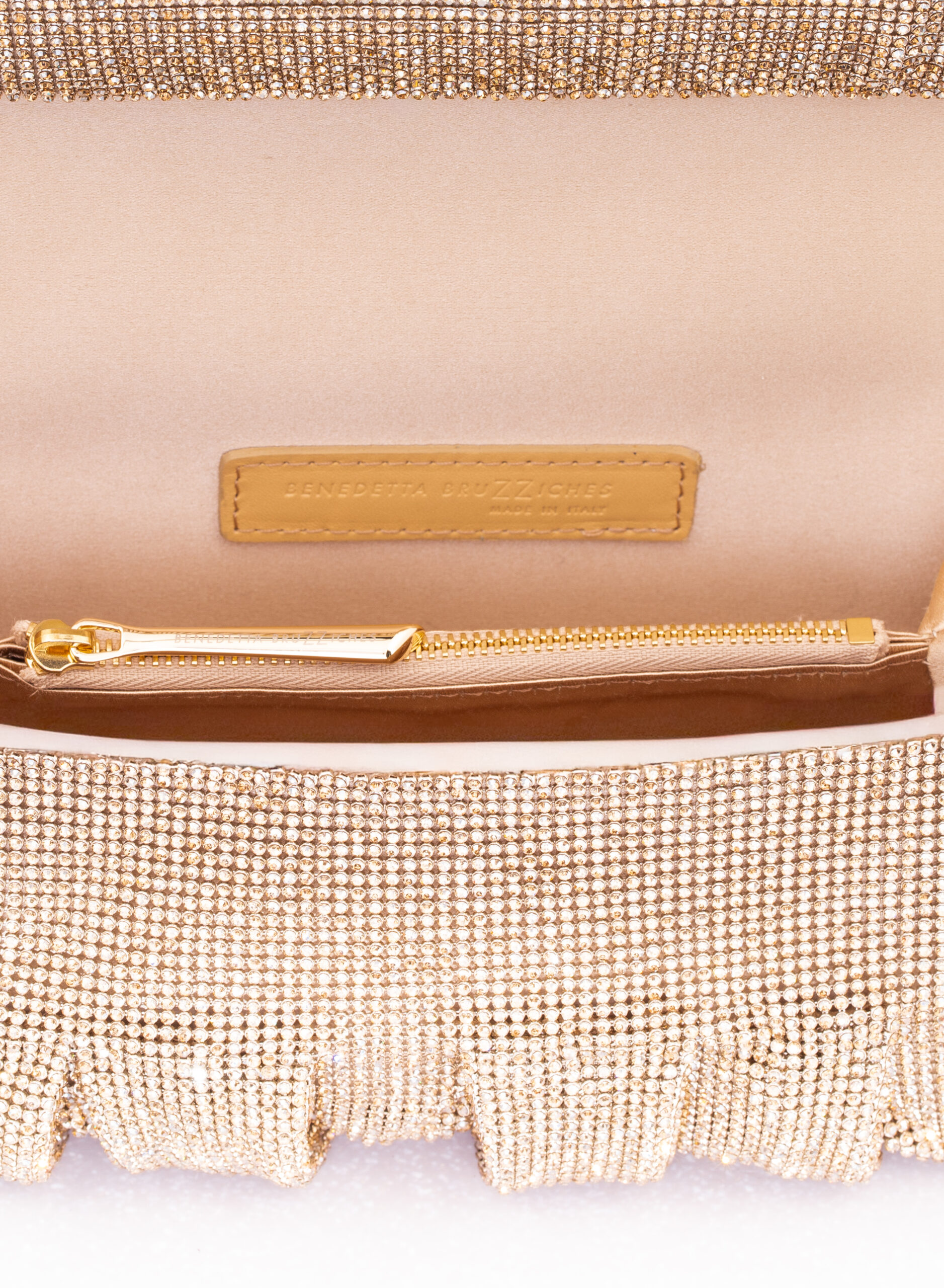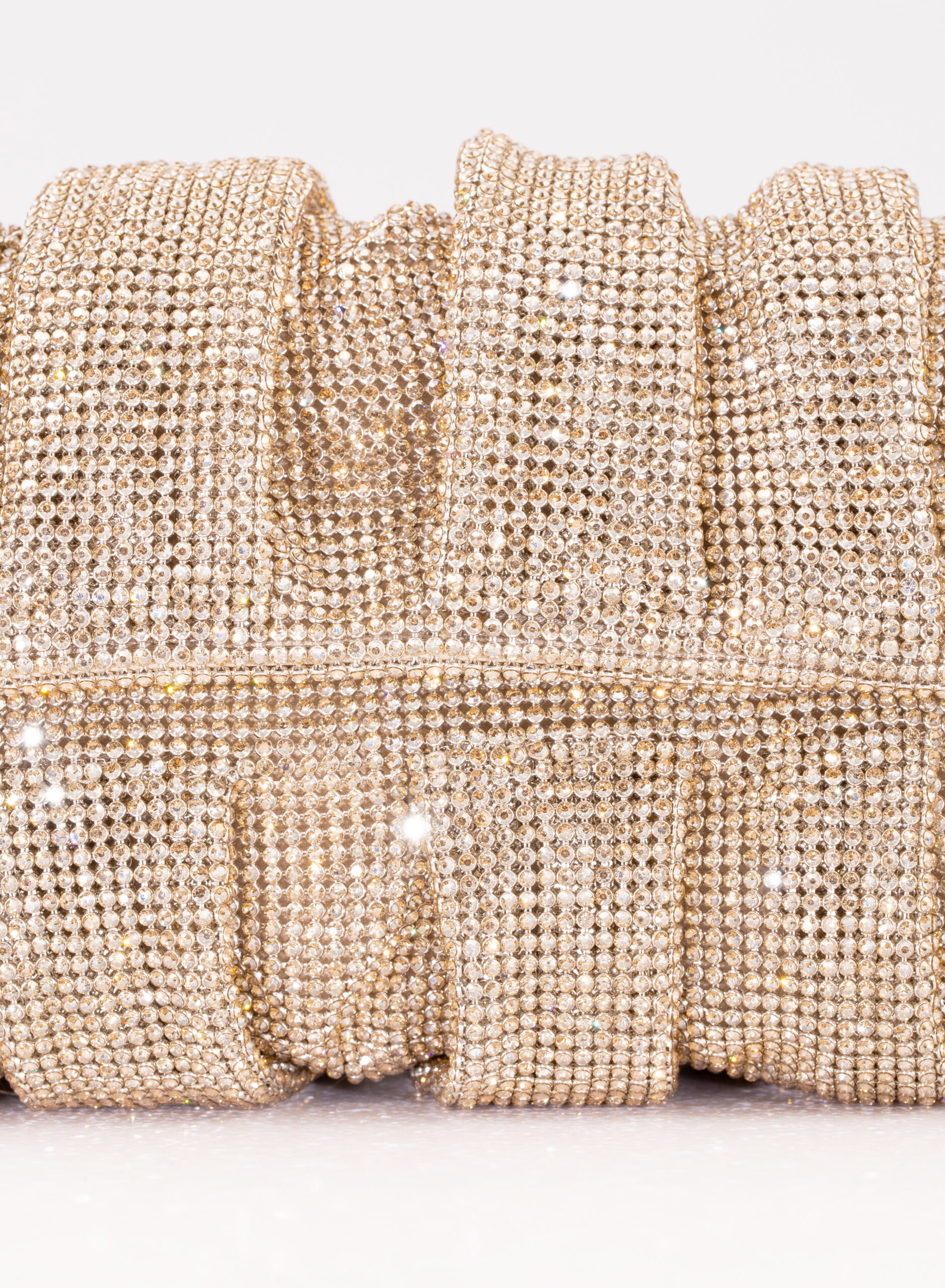 External: 100% Aluminium mesh studded with crystal rhinestones