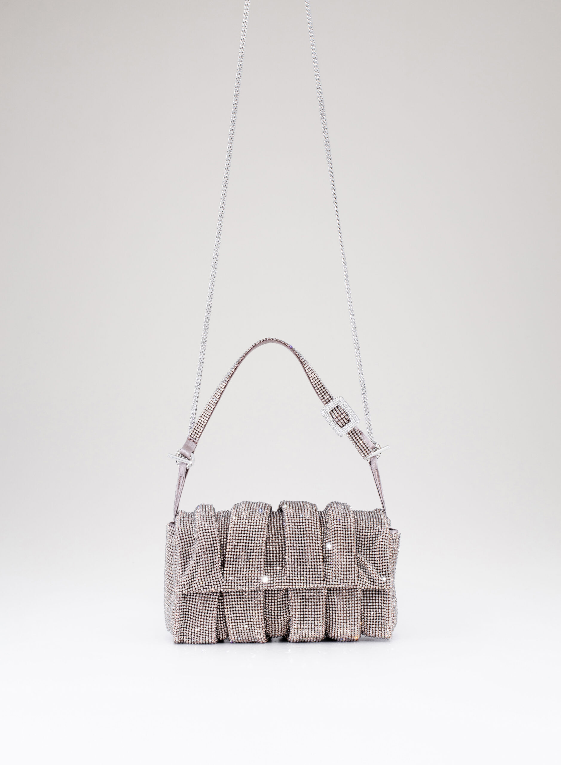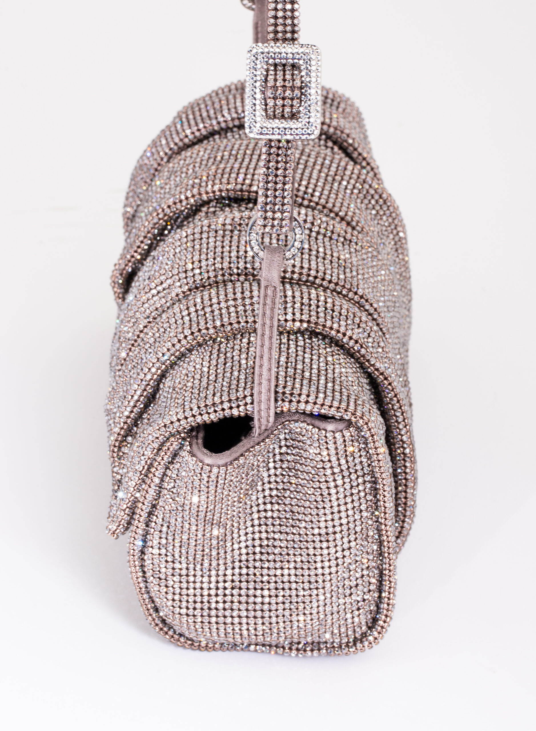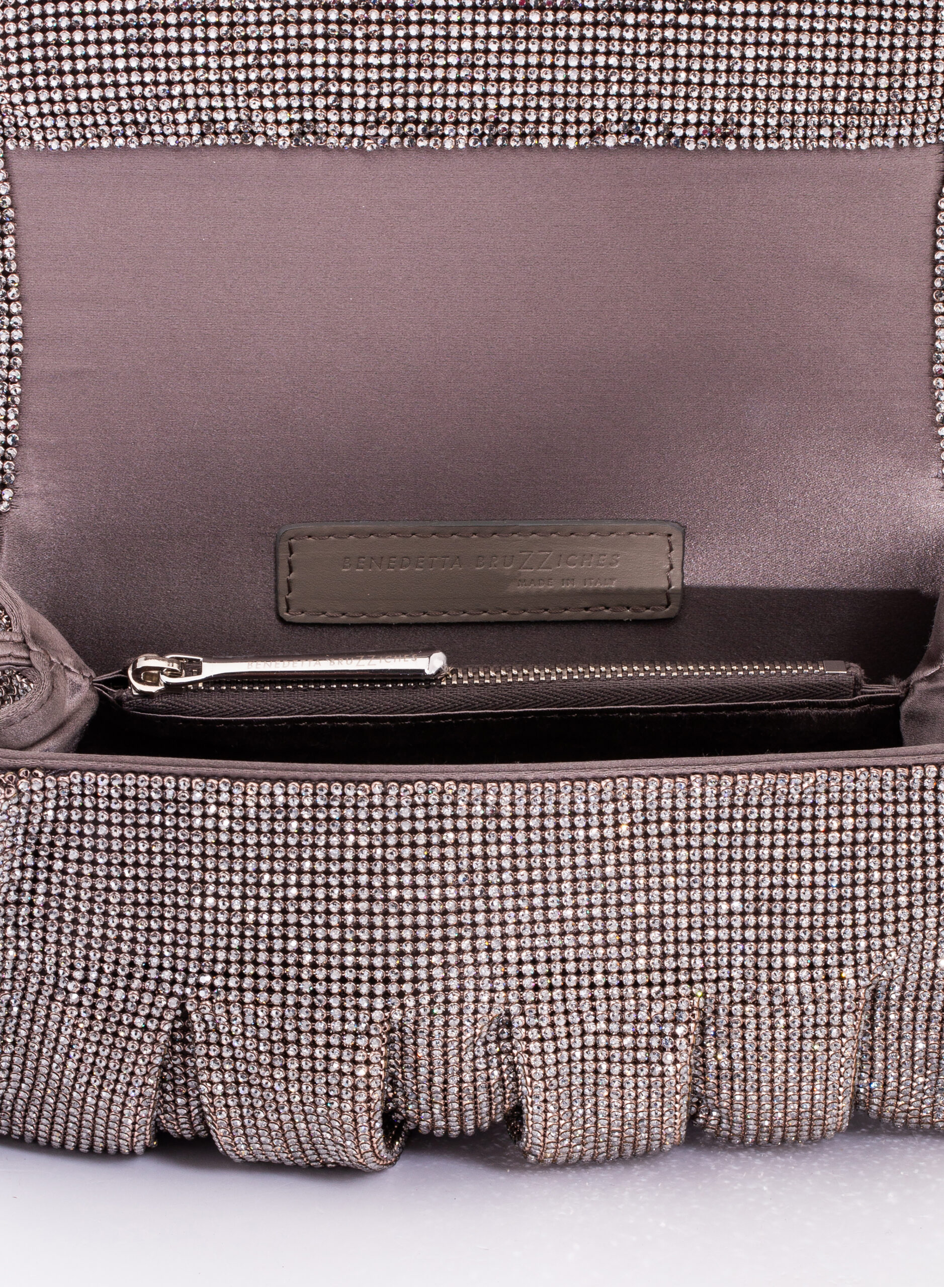 Iris is named after Iris Apfel, that lady with the oversized glasses who, without ever raising her voice, taught the world the rarest art of all: being amazed by oneself. Like her, this bag does not follow the rules: it gracefully rewrites them. It’s soft, compact, crafted from silk and crystal mesh. An essential treasure chest, designed to hold more than it lets on: your phone, a cardholder, a lipstick, your keys — and that little secret every woman carries with her. Small on the outside, surprisingly organized within — like those kind souls who manage to make space, even when it seems there’s none left. It comes with two straps: a short handle to keep it close, and a longer one for when you want to feel free. Because Iris knows: elegance is the balance between holding on and letting go. She’s not made for the occasion. She creates it. On the velvet couches of a party among friends, under the dim light of an art-house cinema, between the clinking glasses of a night that needs no explanation. Wherever she goes, Iris opens a path of quiet light, reminding us that elegance is not volume, but rhythm. Not noise, but resonance. It’s what remains — even after everything else has passed.
