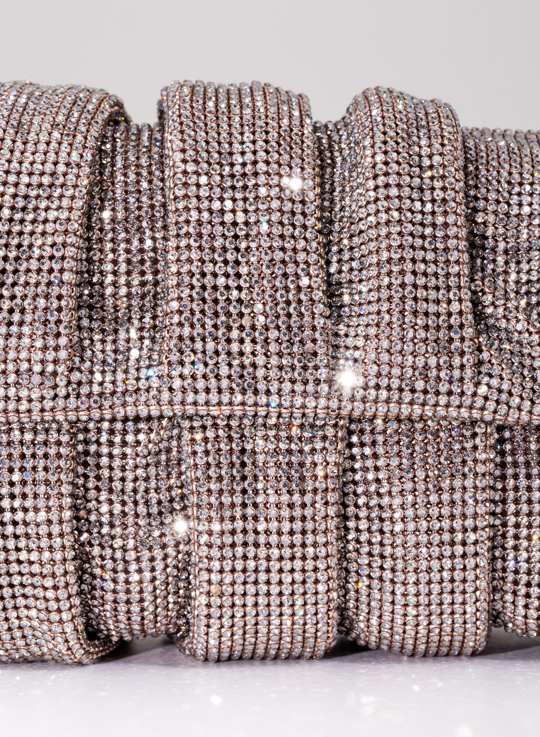 External: 100% Aluminium mesh studded with crystal rhinestones