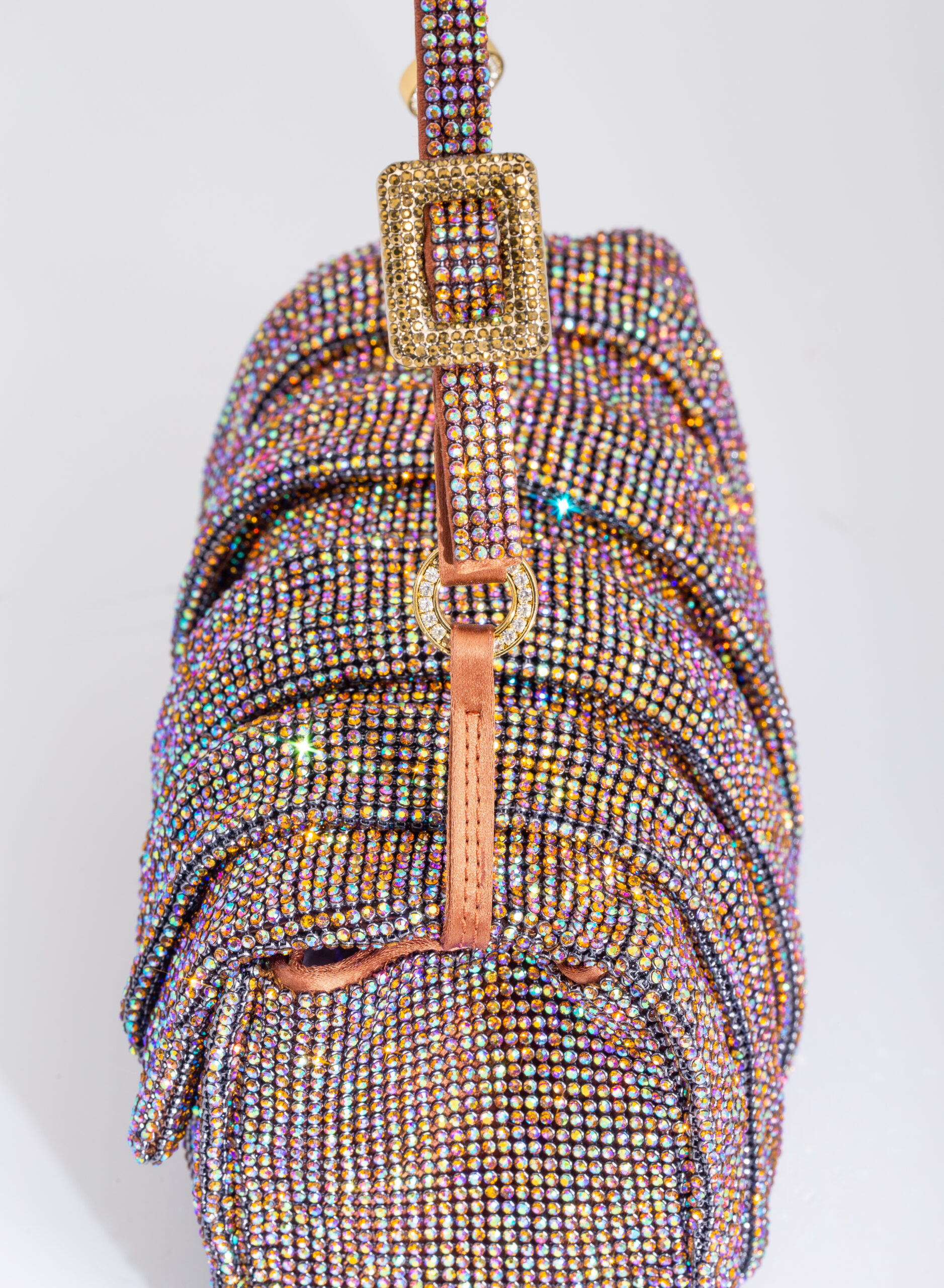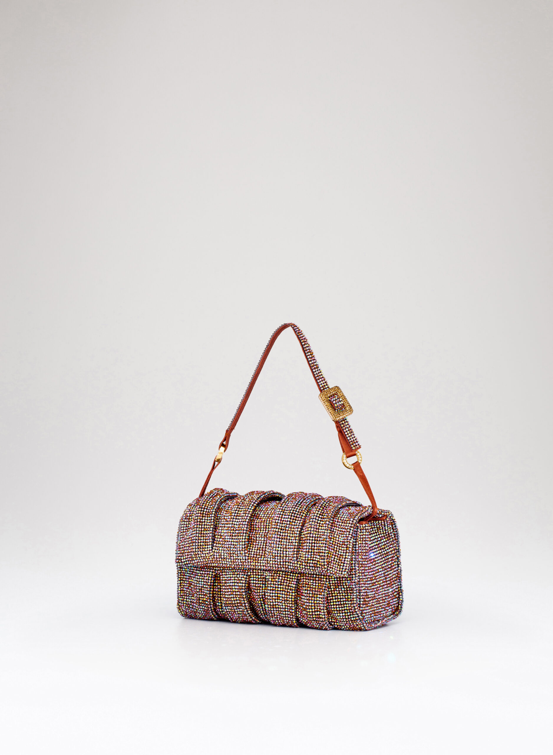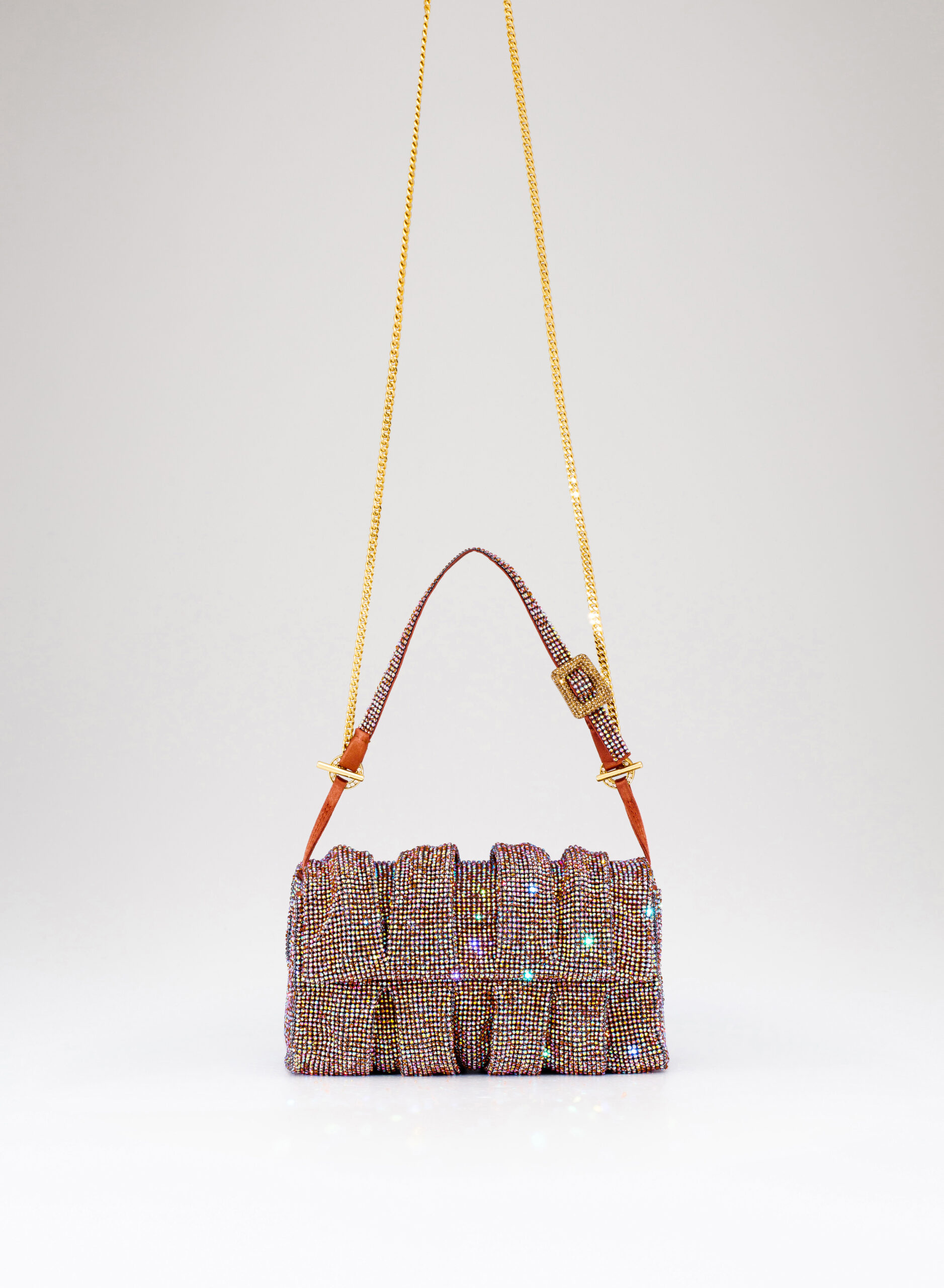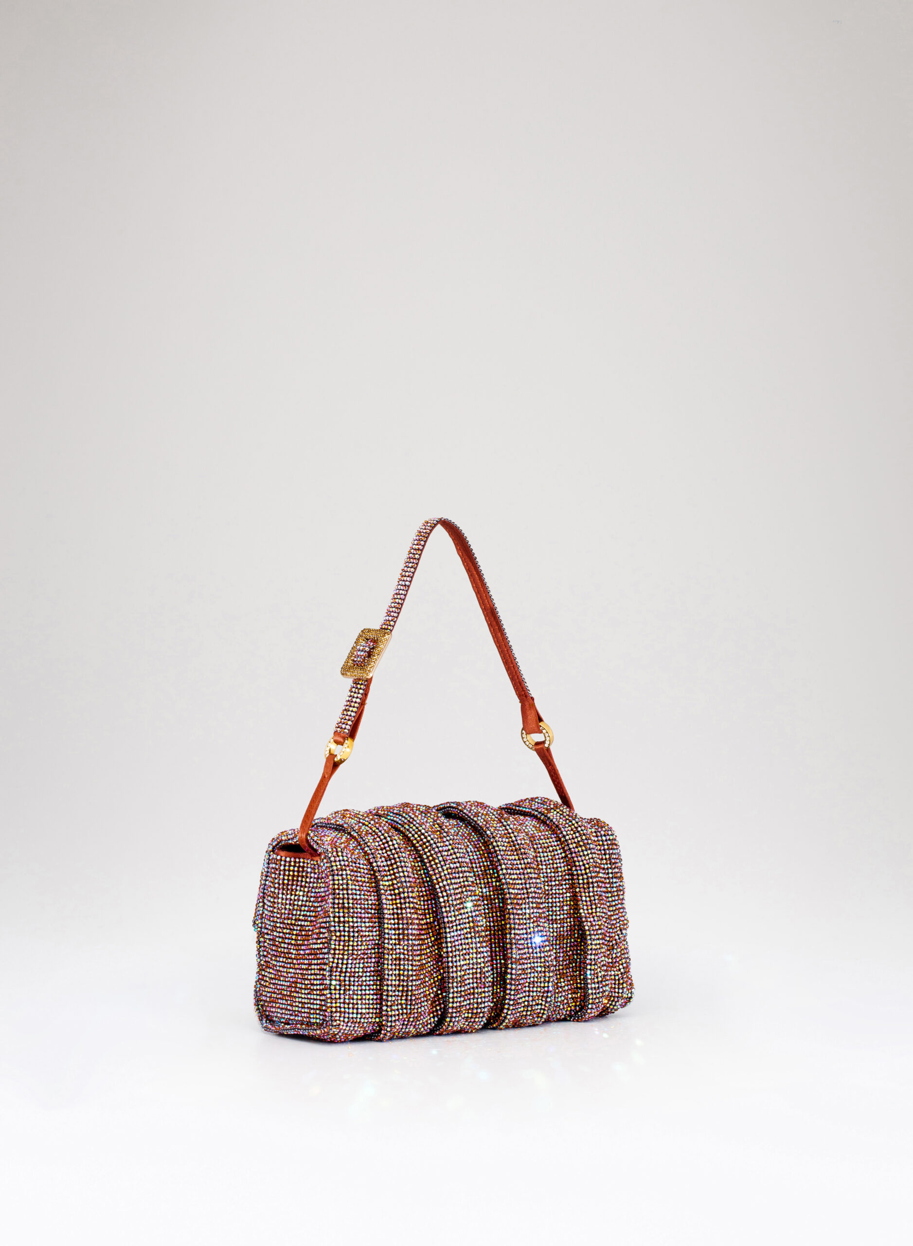 Iris is named after Iris Apfel, that lady with the oversized glasses who, without ever raising her voice, taught the world the rarest art of all: being amazed by oneself. Like her, this bag does not follow the rules: it gracefully rewrites them. It’s soft, compact, crafted from silk and crystal mesh. An essential treasure chest, designed to hold more than it lets on: your phone, a cardholder, a lipstick, your keys — and that little secret every woman carries with her. Small on the outside, surprisingly organized within — like those kind souls who manage to make space, even when it seems there’s none left. It comes with two straps: a short handle to keep it close, and a longer one for when you want to feel free. Because Iris knows: elegance is the balance between holding on and letting go. She’s not made for the occasion. She creates it. On the velvet couches of a party among friends, under the dim light of an art-house cinema, between the clinking glasses of a night that needs no explanation. Wherever she goes, Iris opens a path of quiet light, reminding us that elegance is not volume, but rhythm. Not noise, but resonance. It’s what remains — even after everything else has passed.