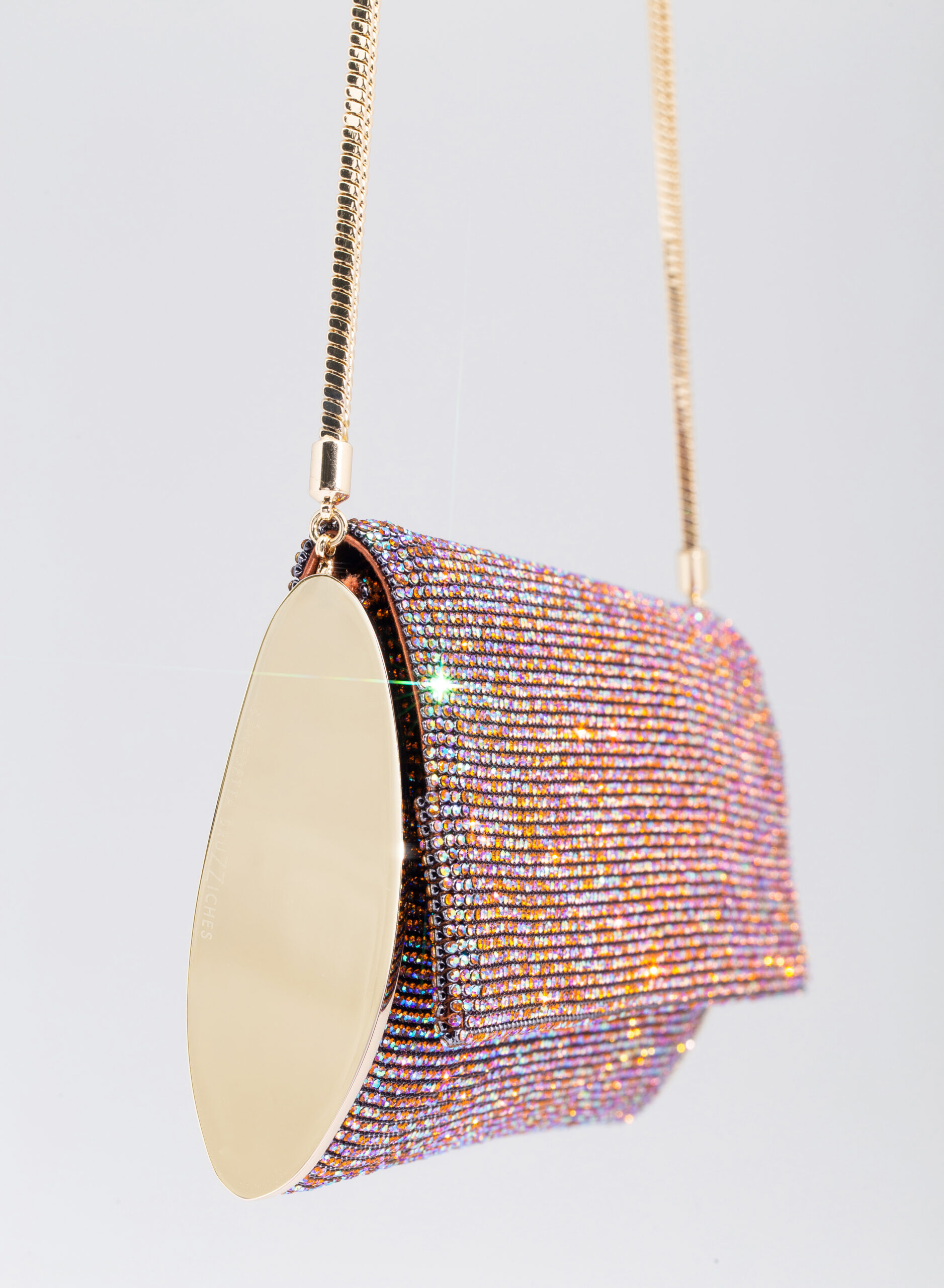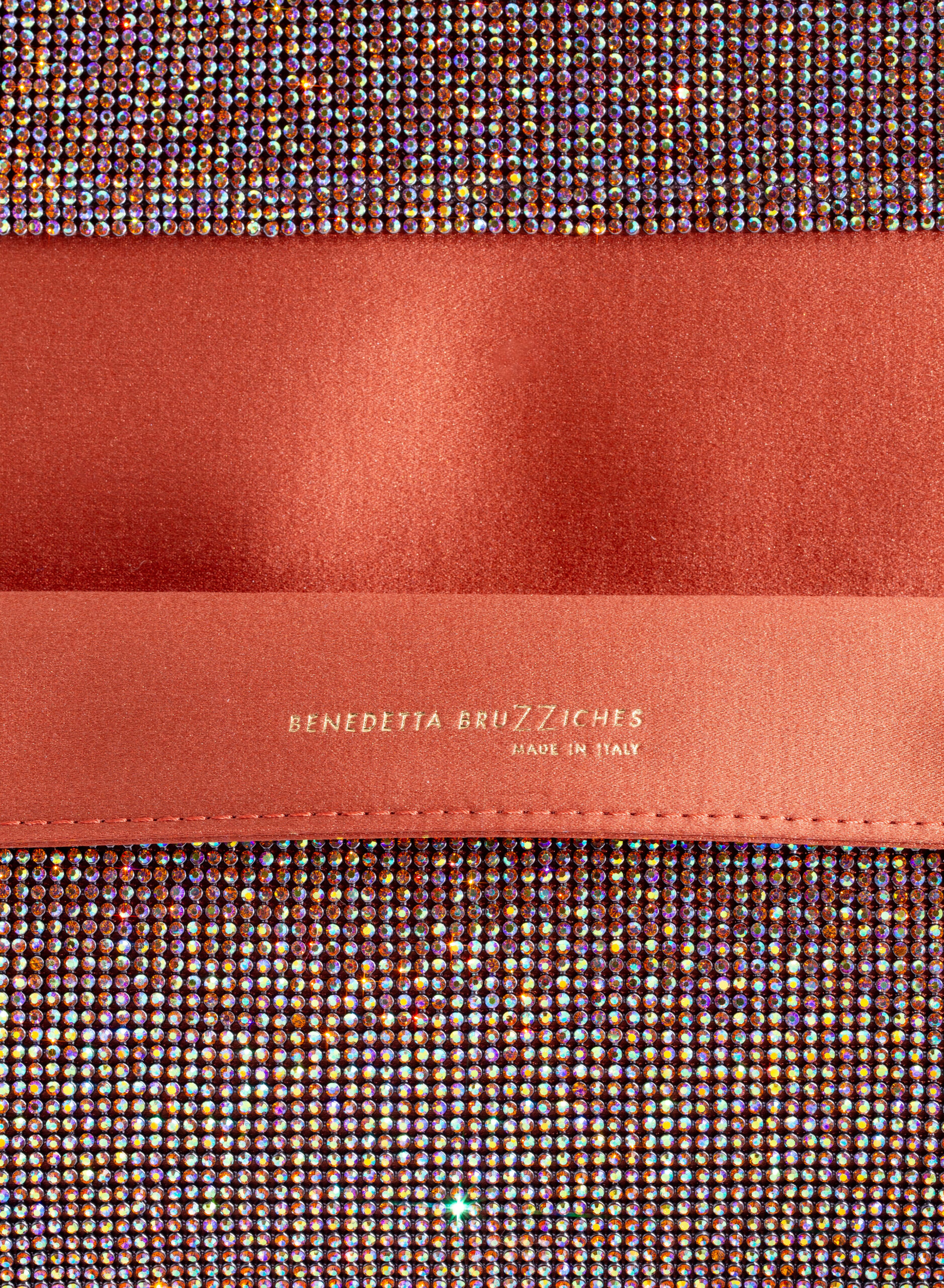 External: 100% Aluminium mesh studded with crystal rhinestones
