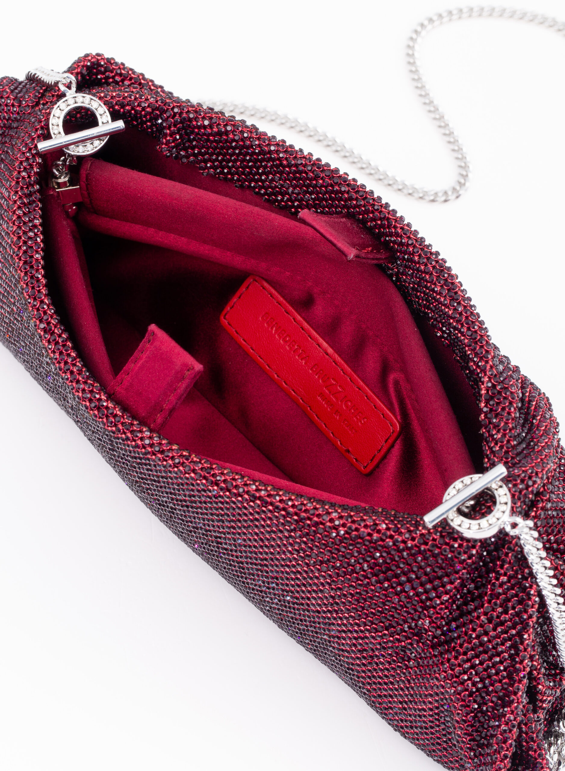 External: 100% Aluminium mesh studded with crystal rhinestones