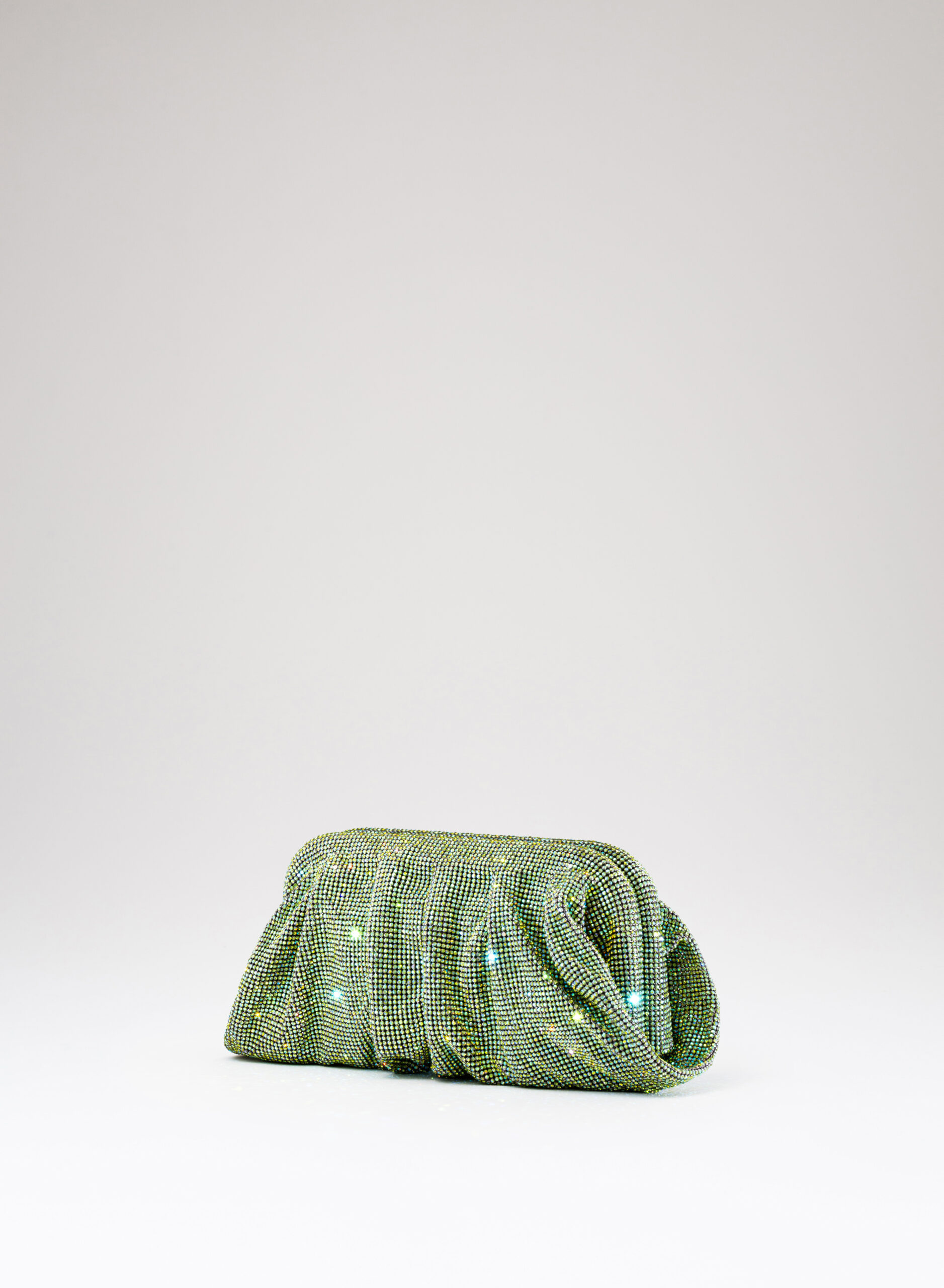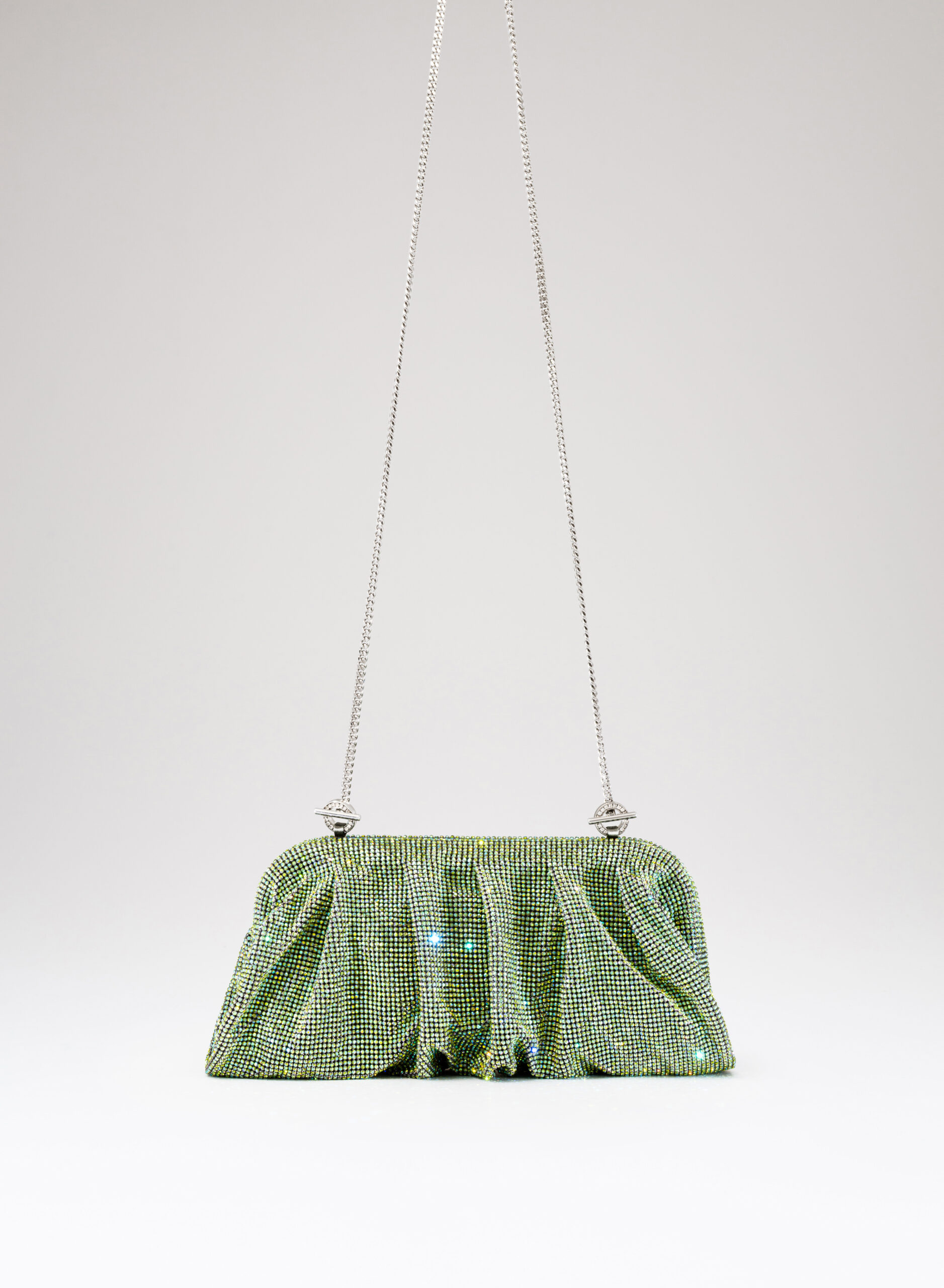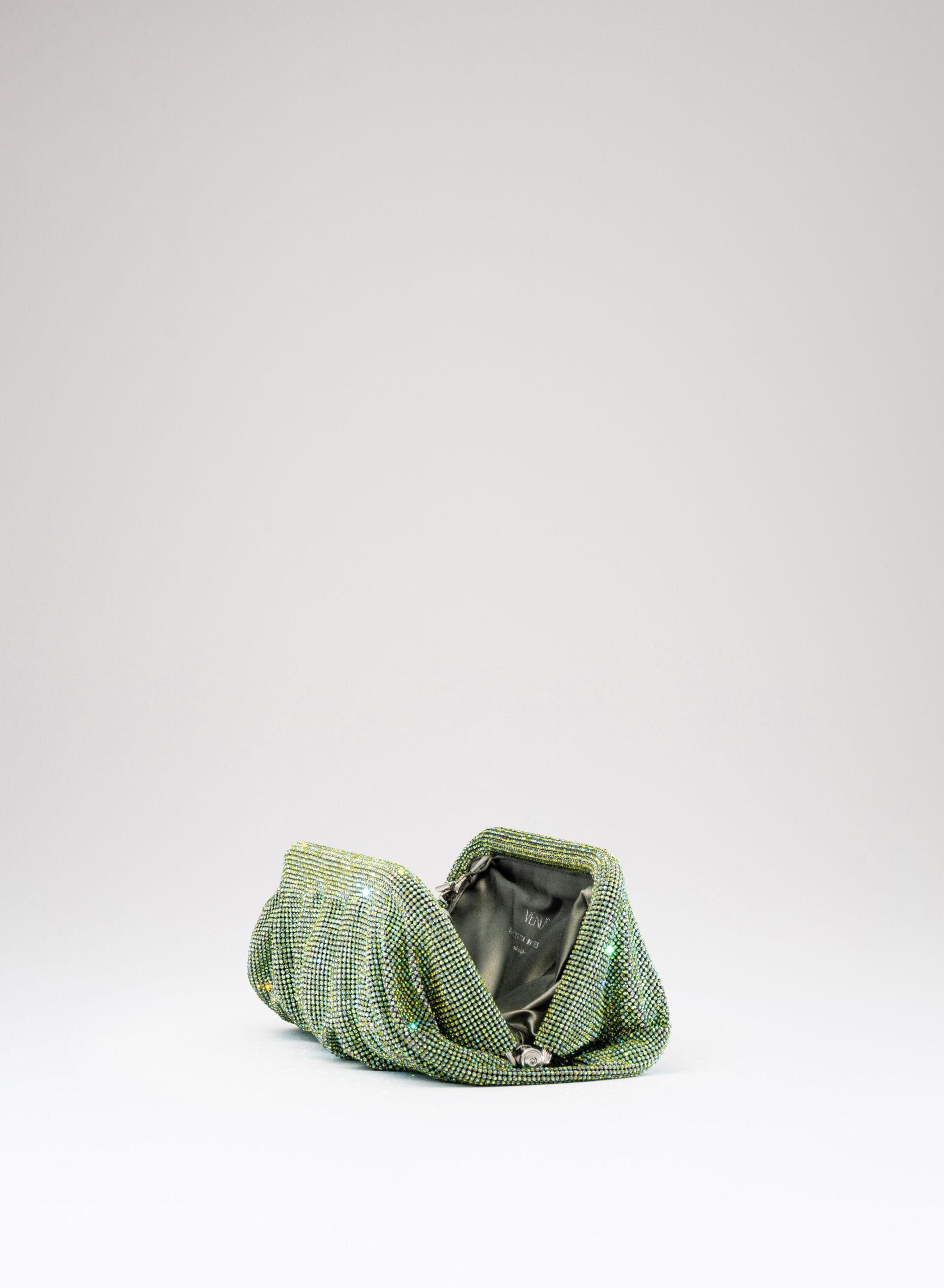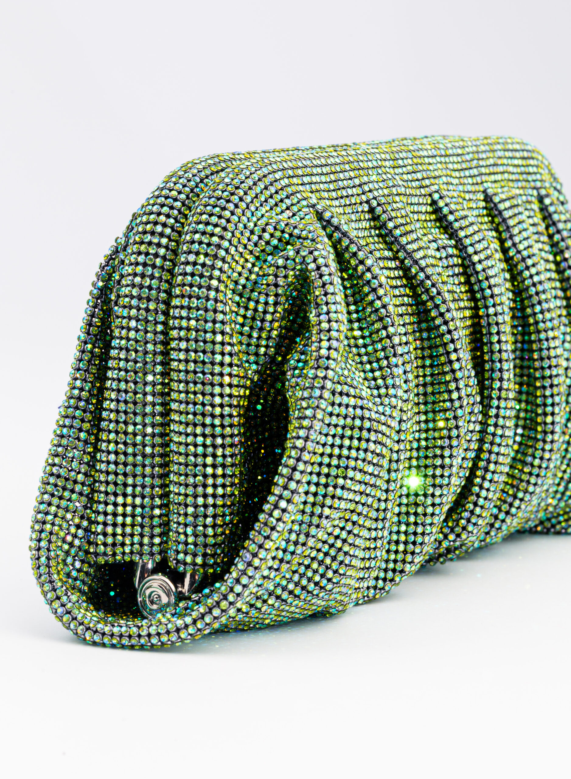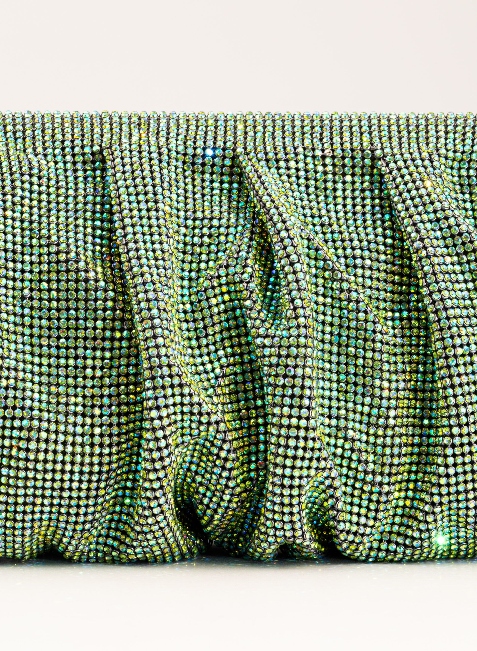 I welcome the love that flows through me like a wave that rolls, breaks on the rock and foams. Like a shower that smokes, boils and fertilizes the burning earth. Like a perfume that rises from the sea, it spreads and saturates the air around. So my body is reborn on Venus. This clutch is a tribute to the goddess of Love and Beauty and the magical moment in which every woman, who loves and is loved, is transformed. From mortal becomes goddess in a perfect personification of Venus. With soft and wavy shapes, Venus is made with a network of sparkling crystals sewn by hand with the same attention that would be devoted to a jewel. Inside, a denim clutch is ready to welcome the necessary for an evening out.