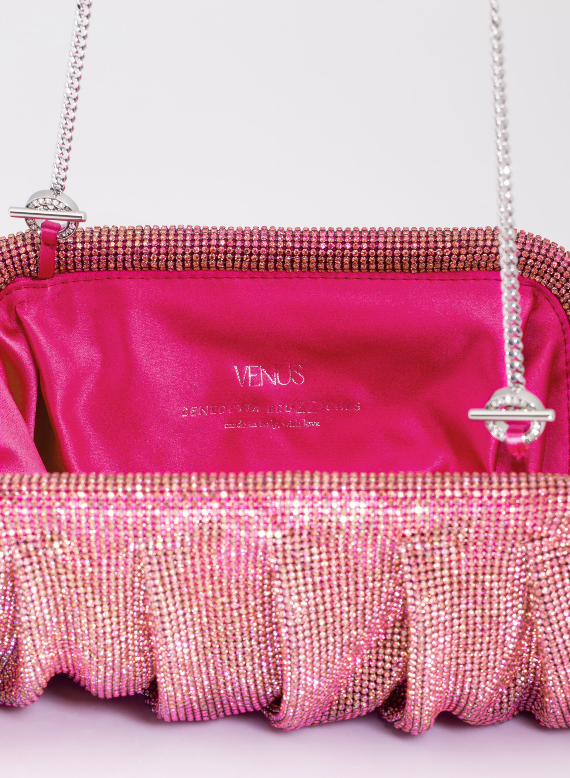 External: 100% Aluminium mesh studded with crystal rhinestones