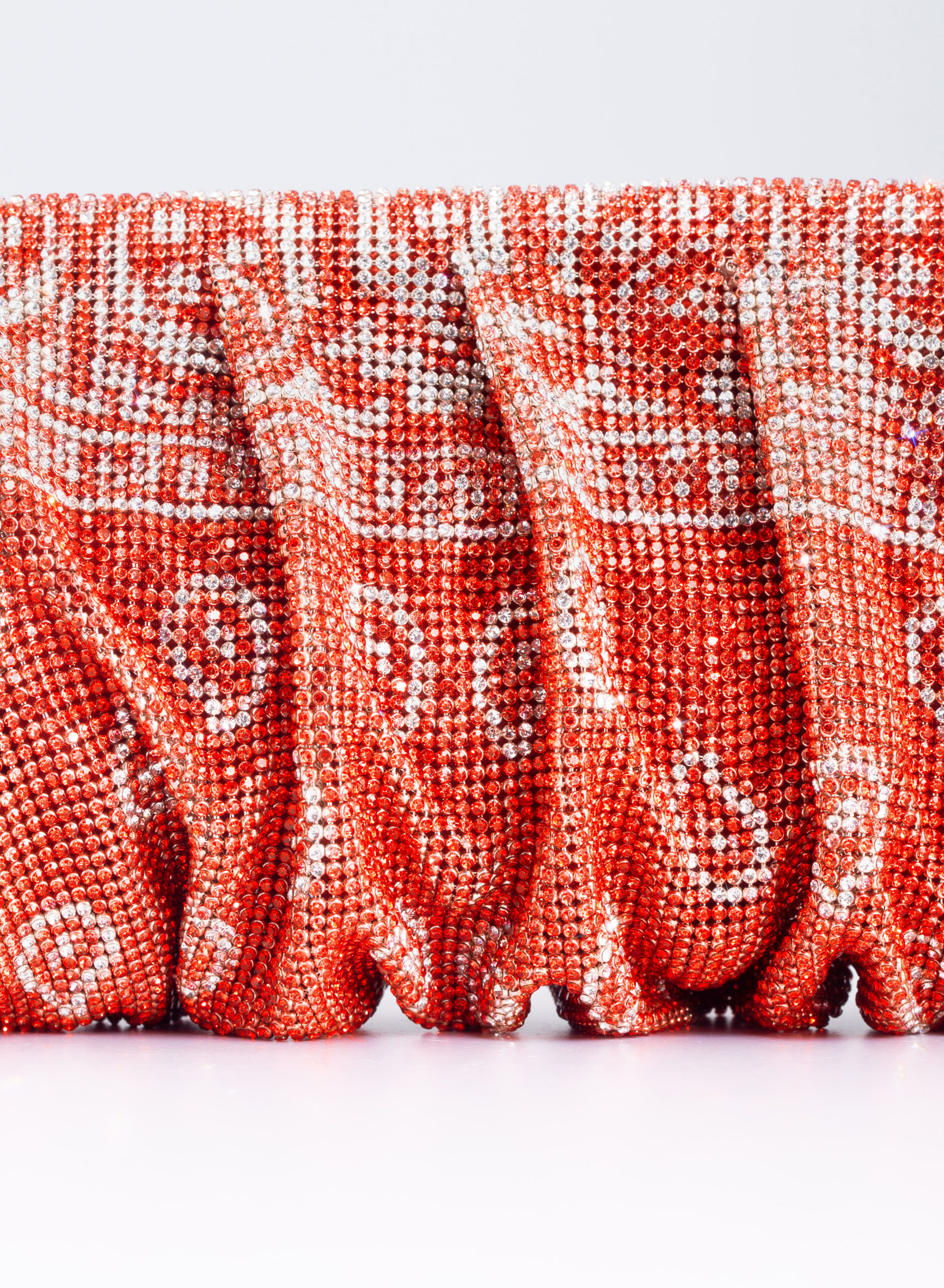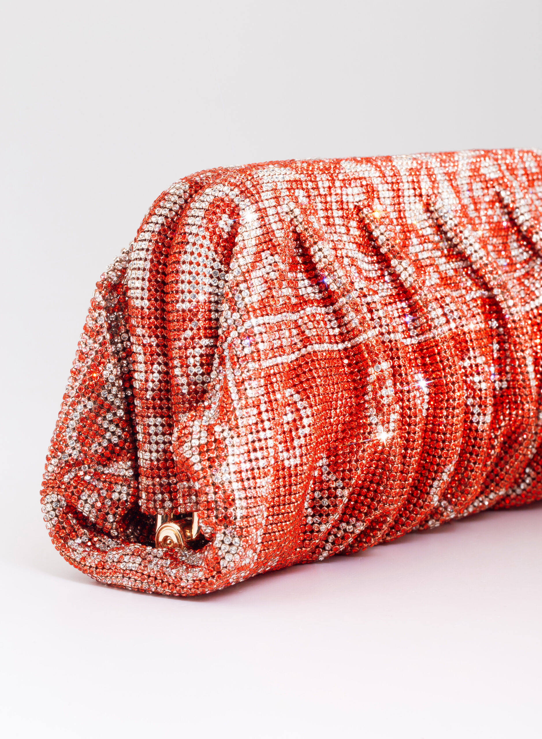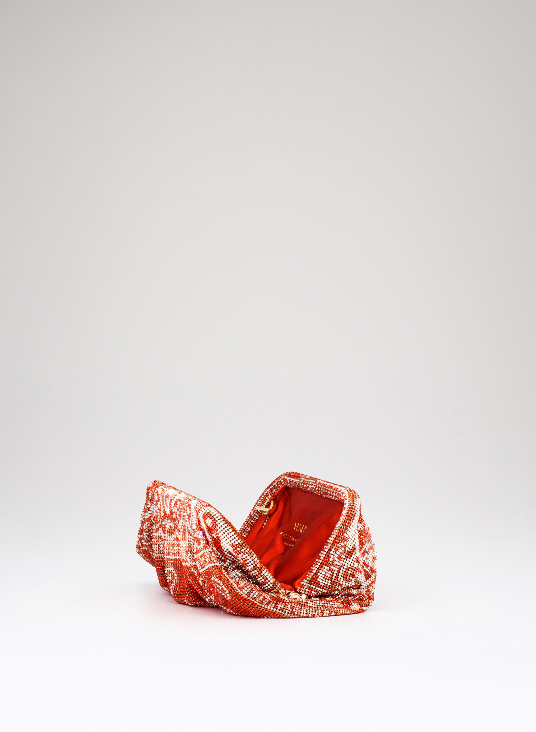 I welcome the love that flows through me like a wave that rolls, breaks on the rock and foams. Like a shower that smokes, boils and fertilizes the burning earth. Like a perfume that rises from the sea, it spreads and saturates the air around. So my body is reborn on Venus. This clutch is a tribute to the goddess of Love and Beauty and the magical moment in which every woman, who loves and is loved, is transformed. From mortal becomes goddess in a perfect personification of Venus. With soft and wavy shapes, Venus is made with a network of sparkling crystals sewn by hand with the same attention that would be devoted to a jewel. Inside, a denim clutch is ready to welcome the necessary for an evening out.