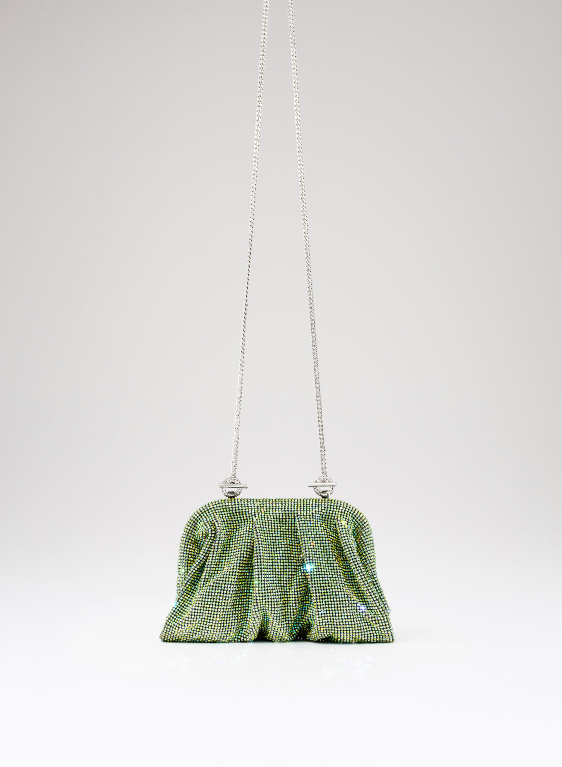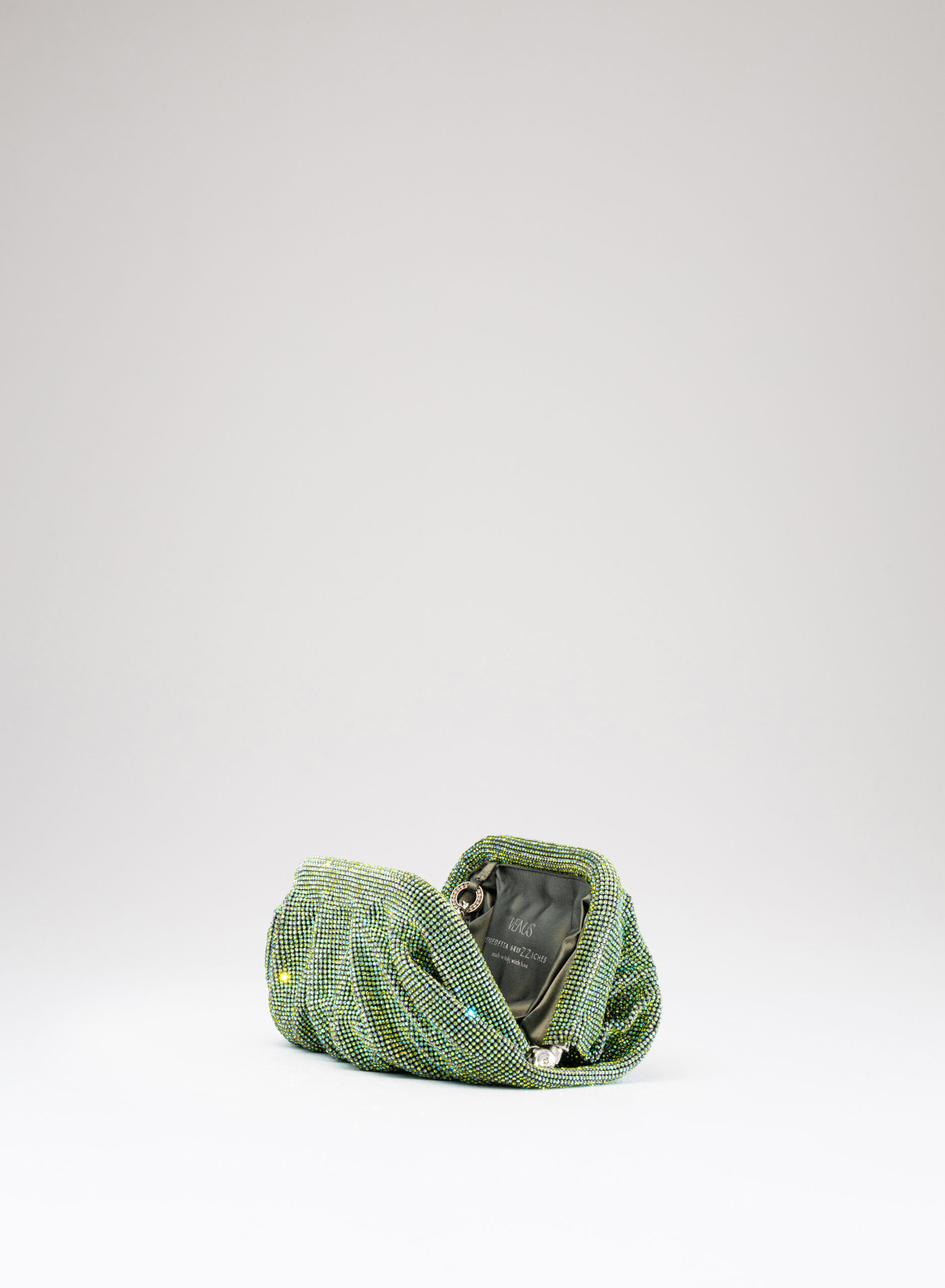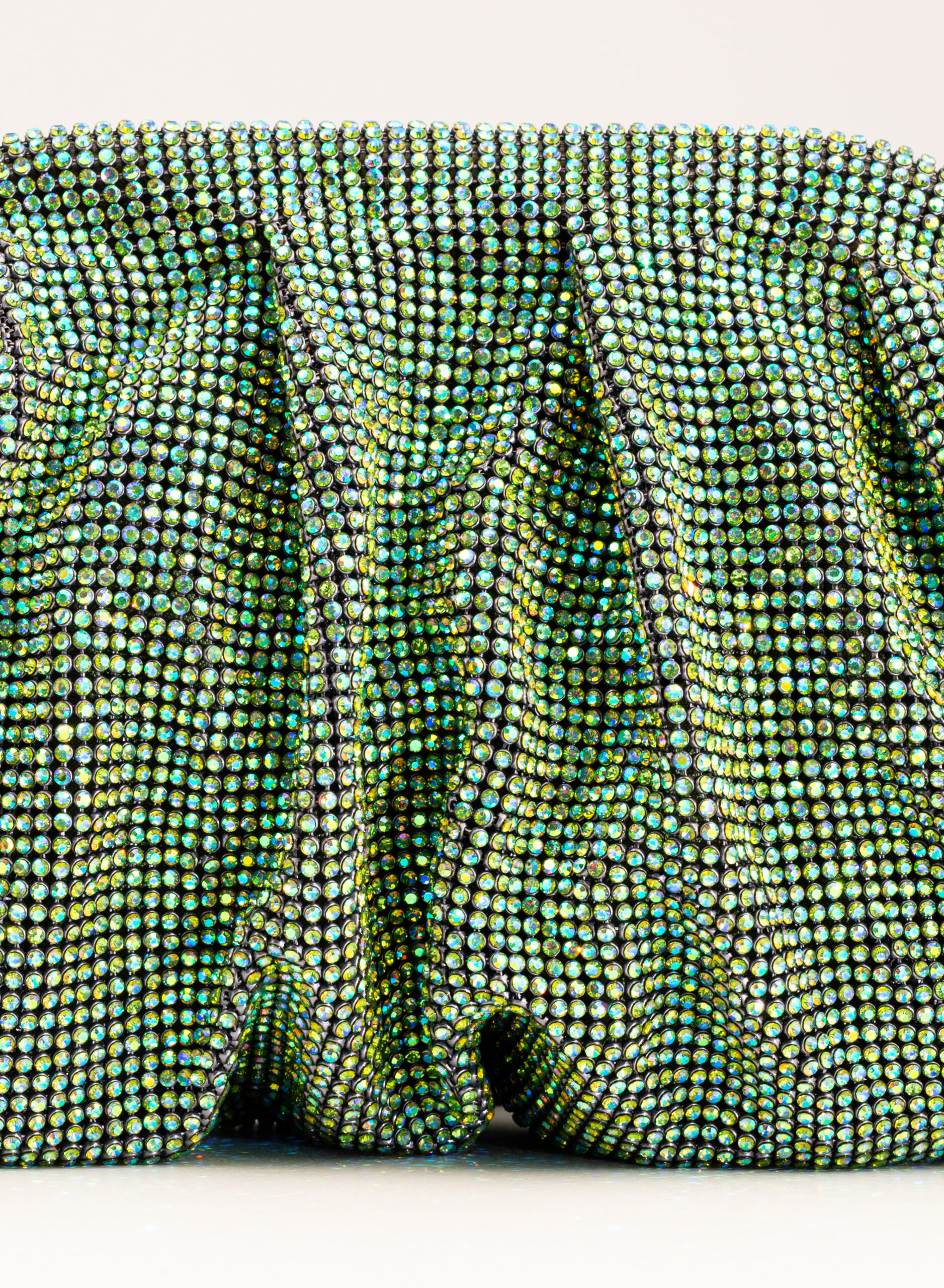 I welcome the love that flows through me like a wave that rolls, breaks on the rock and foams. Like a shower that smokes, boils and fertilizes the burning earth. Like a perfume that rises from the sea, it spreads and saturates the air around. So my body is reborn on Venus. This clutch is a tribute to the goddess of Love and Beauty and the magical moment in which every woman, who loves and is loved, is transformed. From mortal becomes goddess in a perfect personification of Venus. With soft and wavy shapes, Venus is made with a network of sparkling crystals sewn by hand with the same attention that would be devoted to a jewel. Inside, a silk satin clutch is ready to welcome the necessary for an evening out.