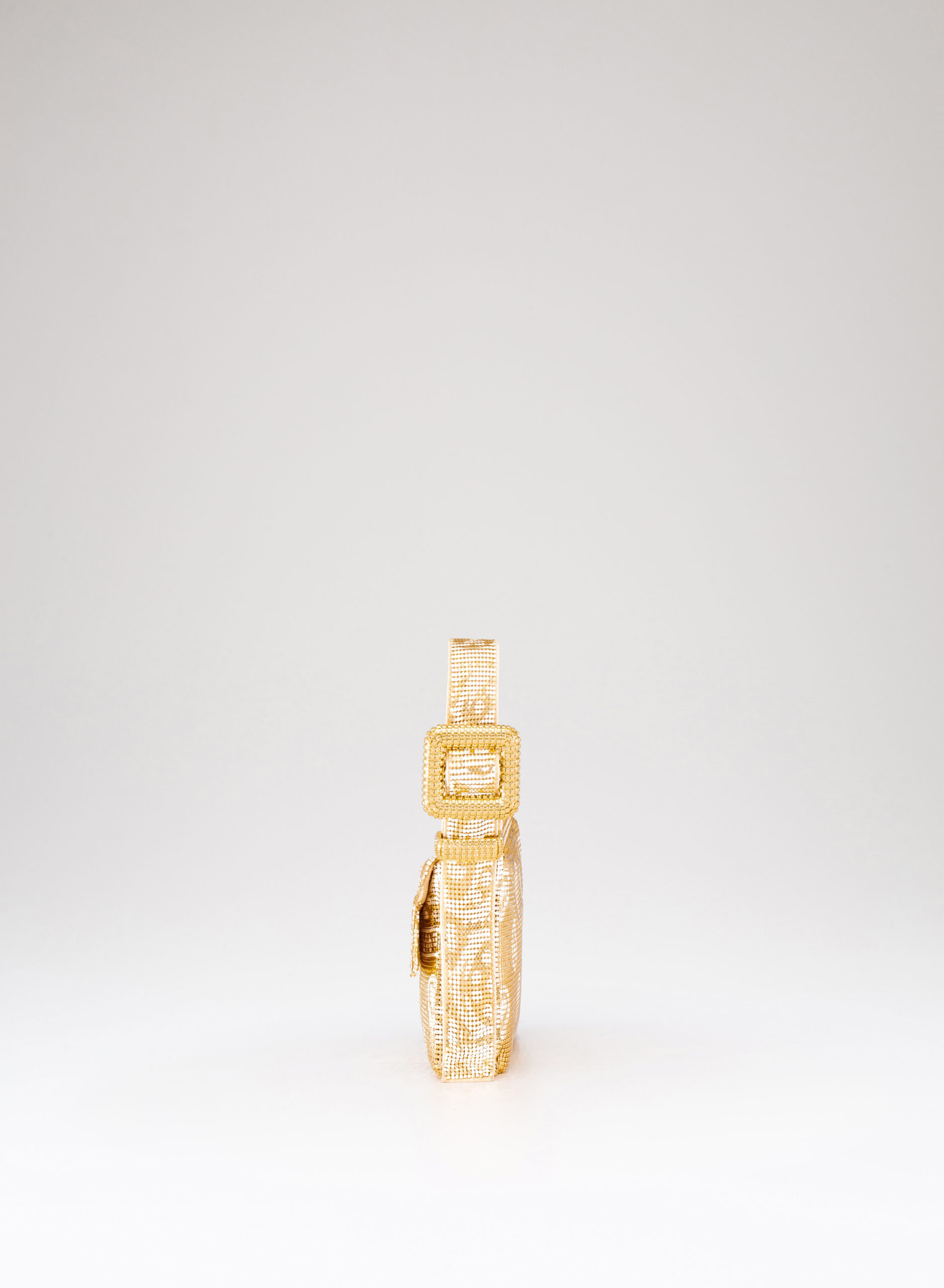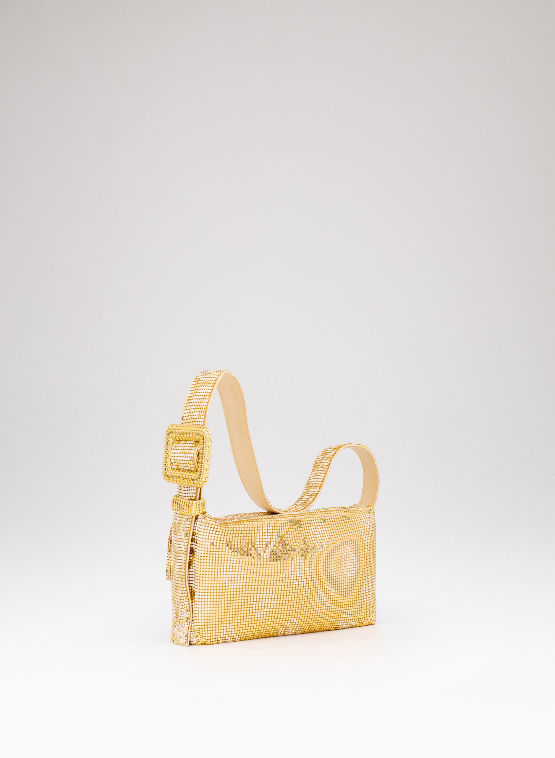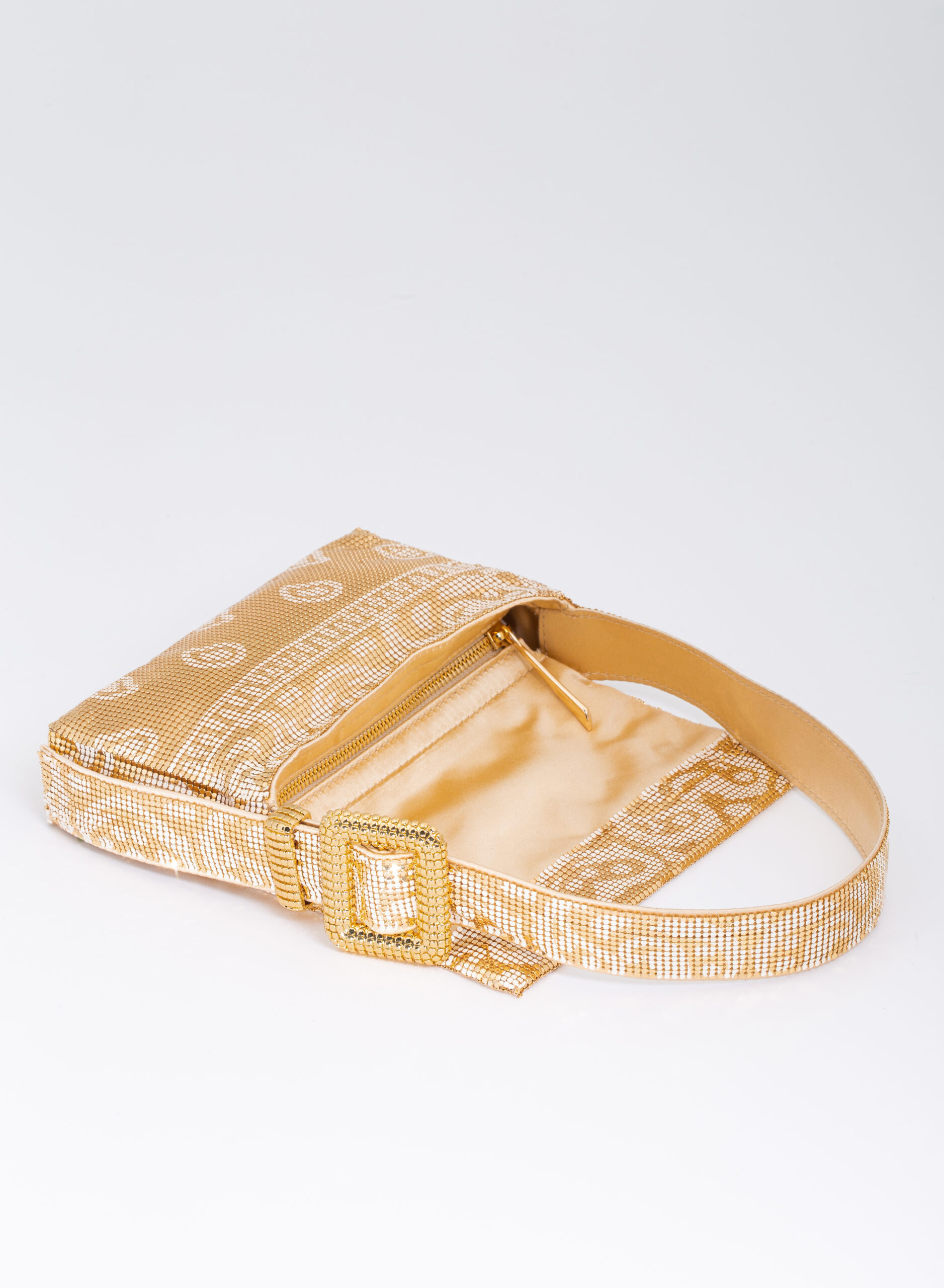External: 100% Aluminium mesh studded with crystal rhinestones