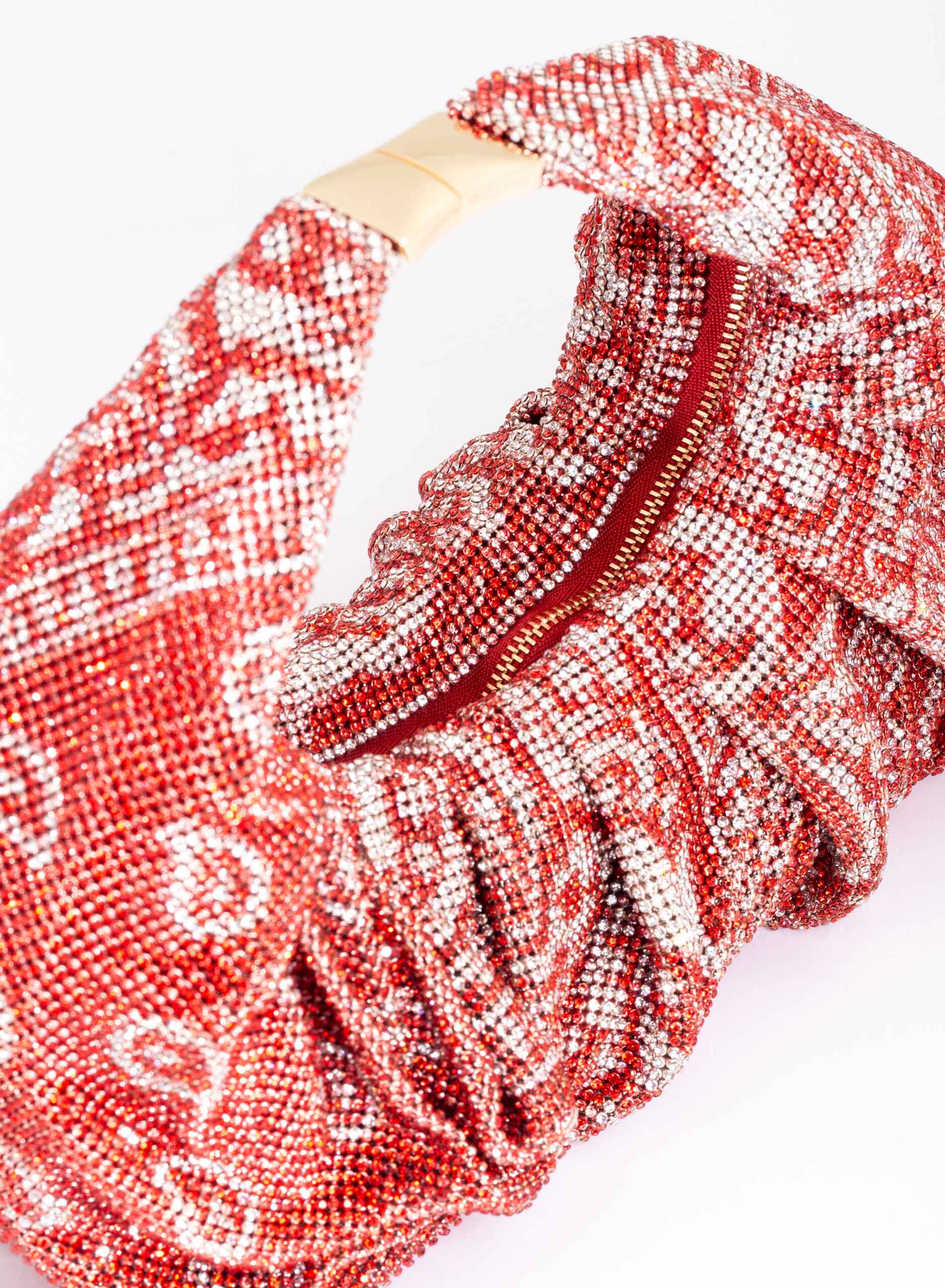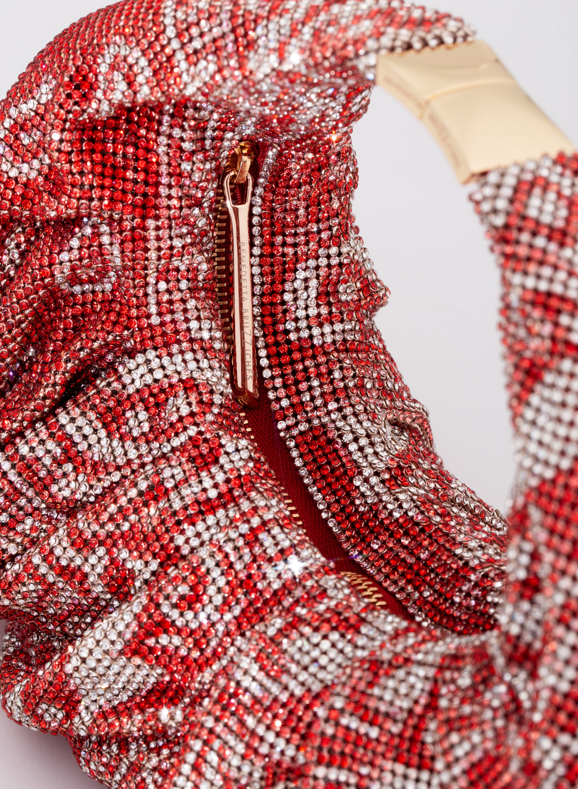 External: 100% Aluminium mesh studded with crystal rhinestones