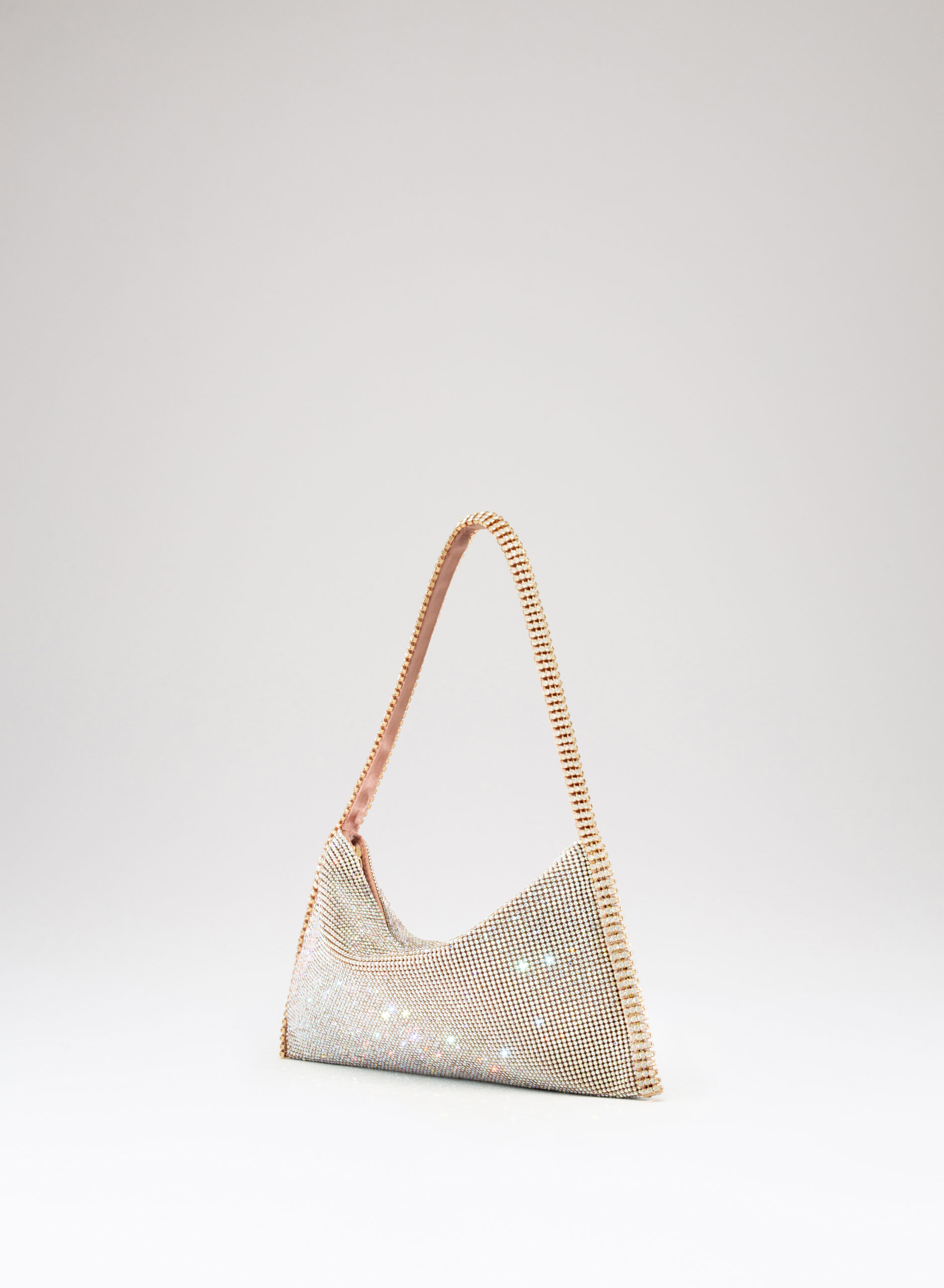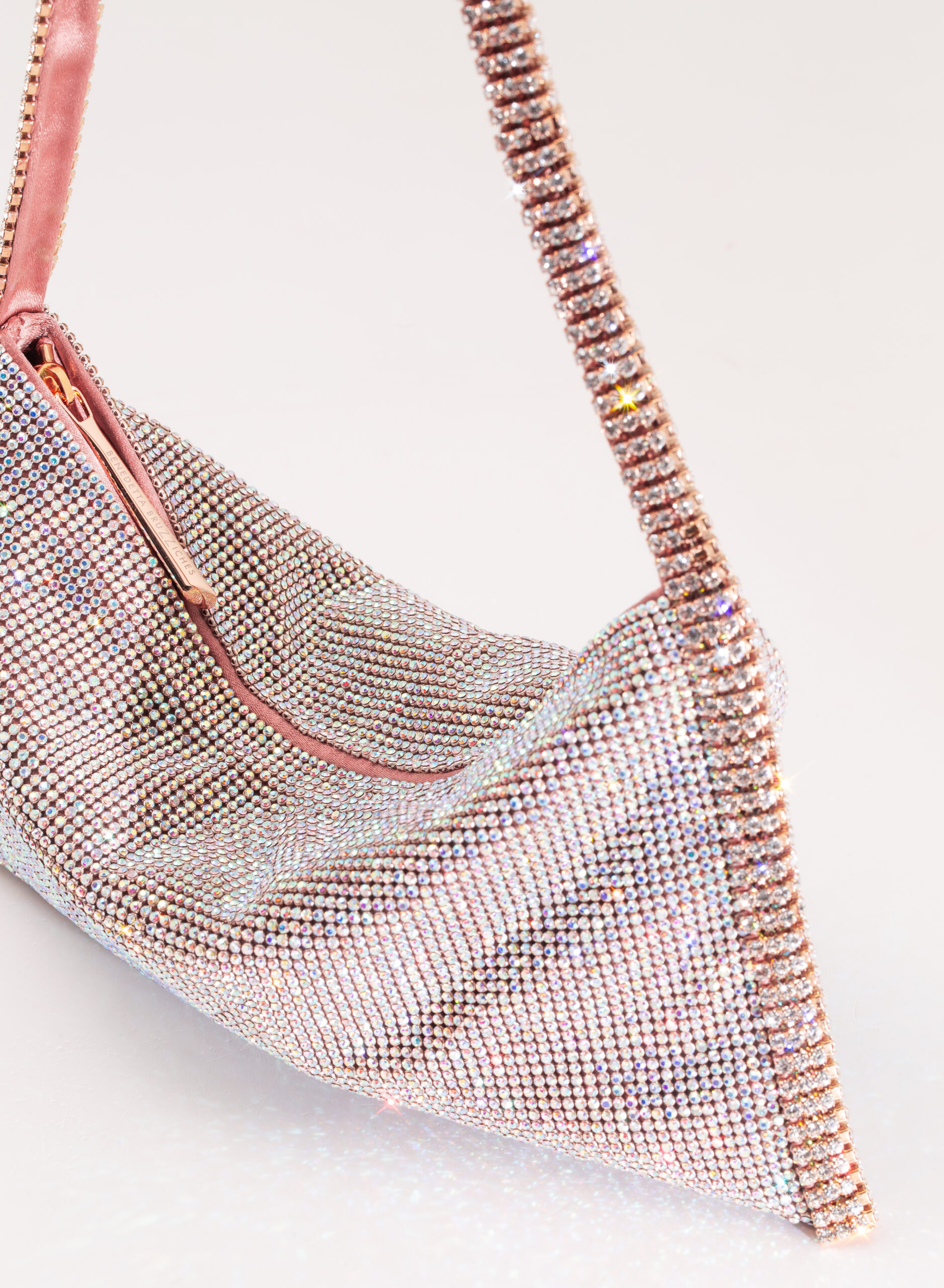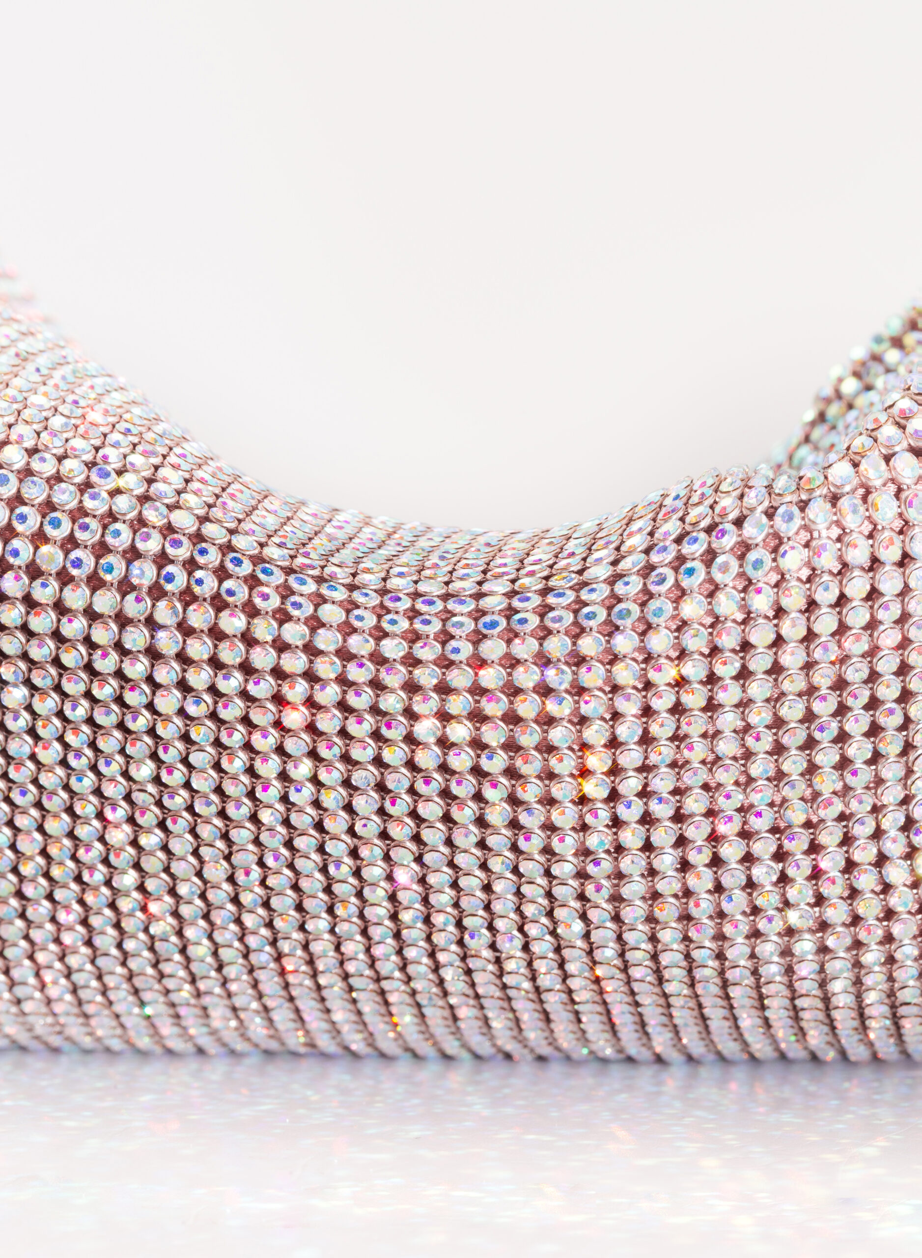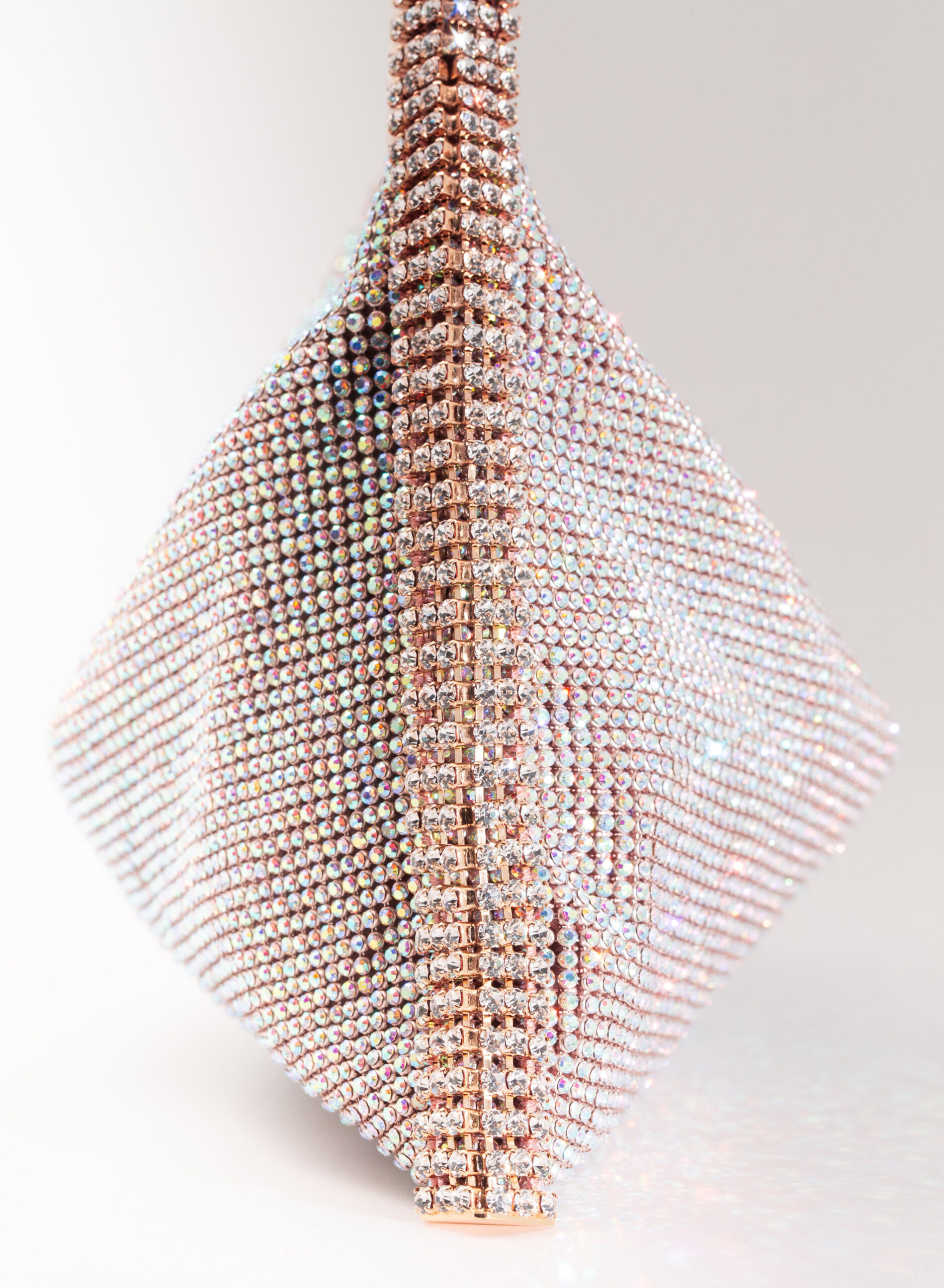 External: 100% alluminium mesh studded with crystal rhinestones