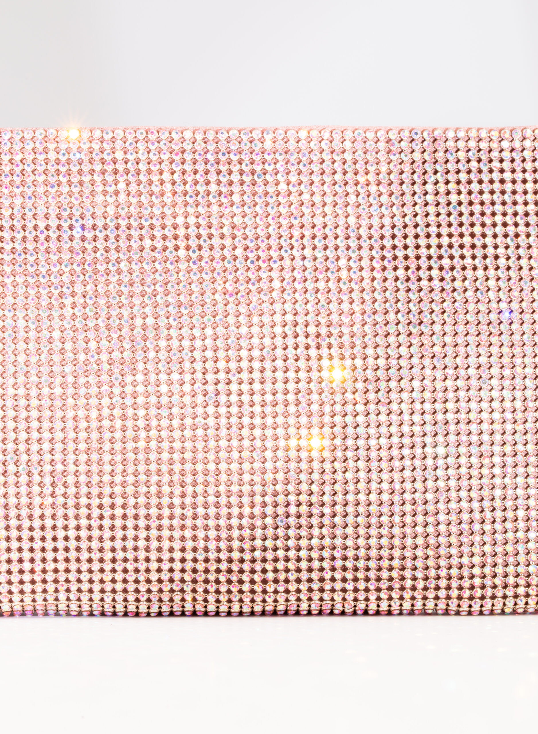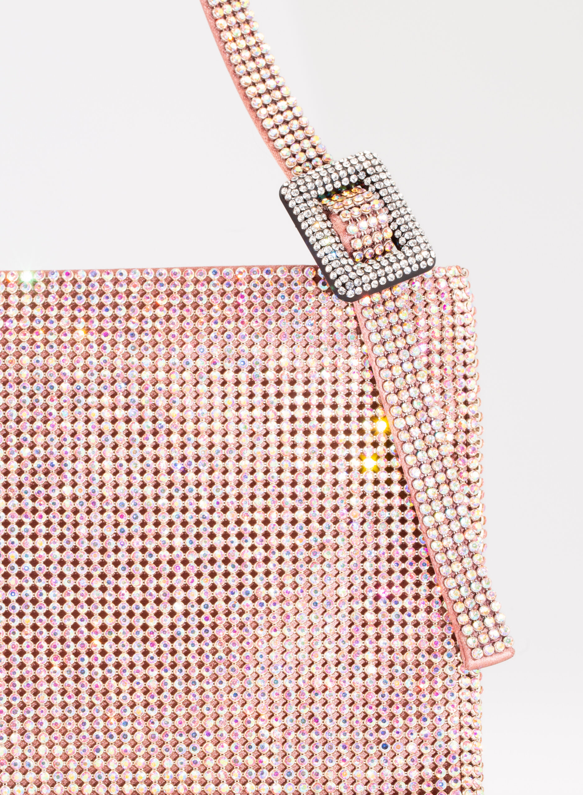 External: 100% alluminium mesh studded with crystal rhinestones