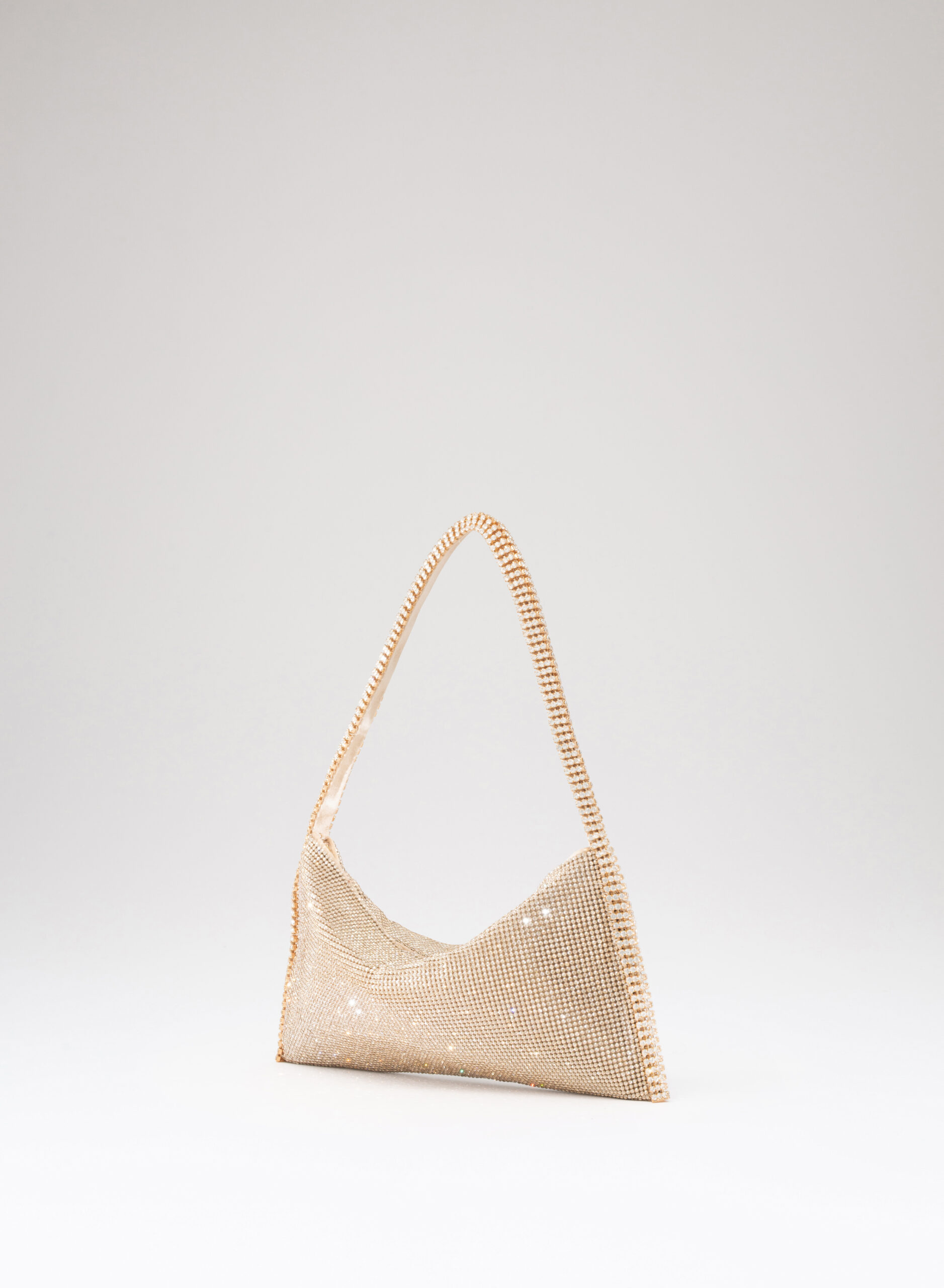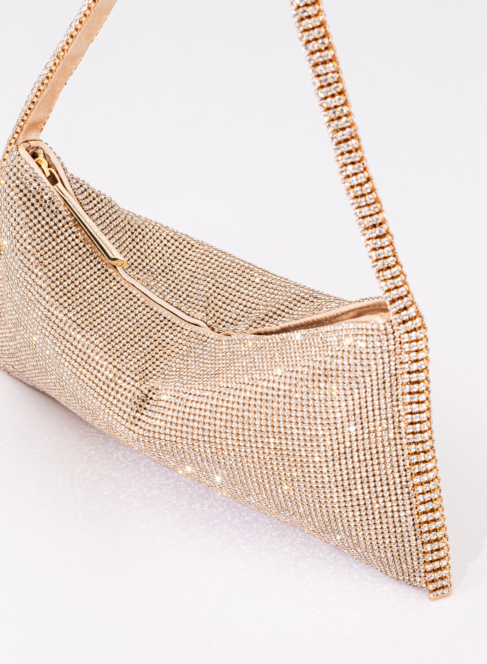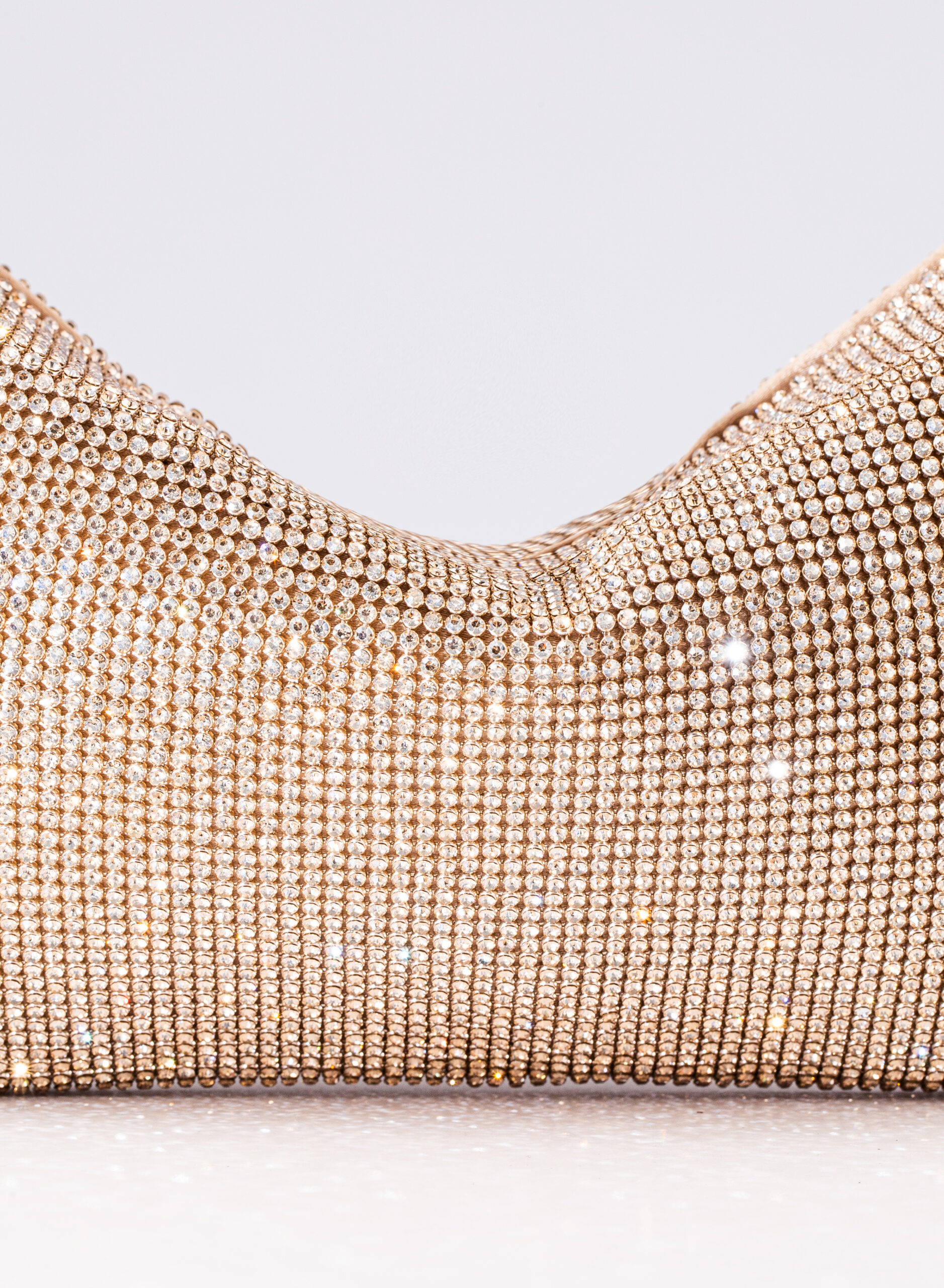 External: 100% alluminium mesh studded with crystal rhinestones