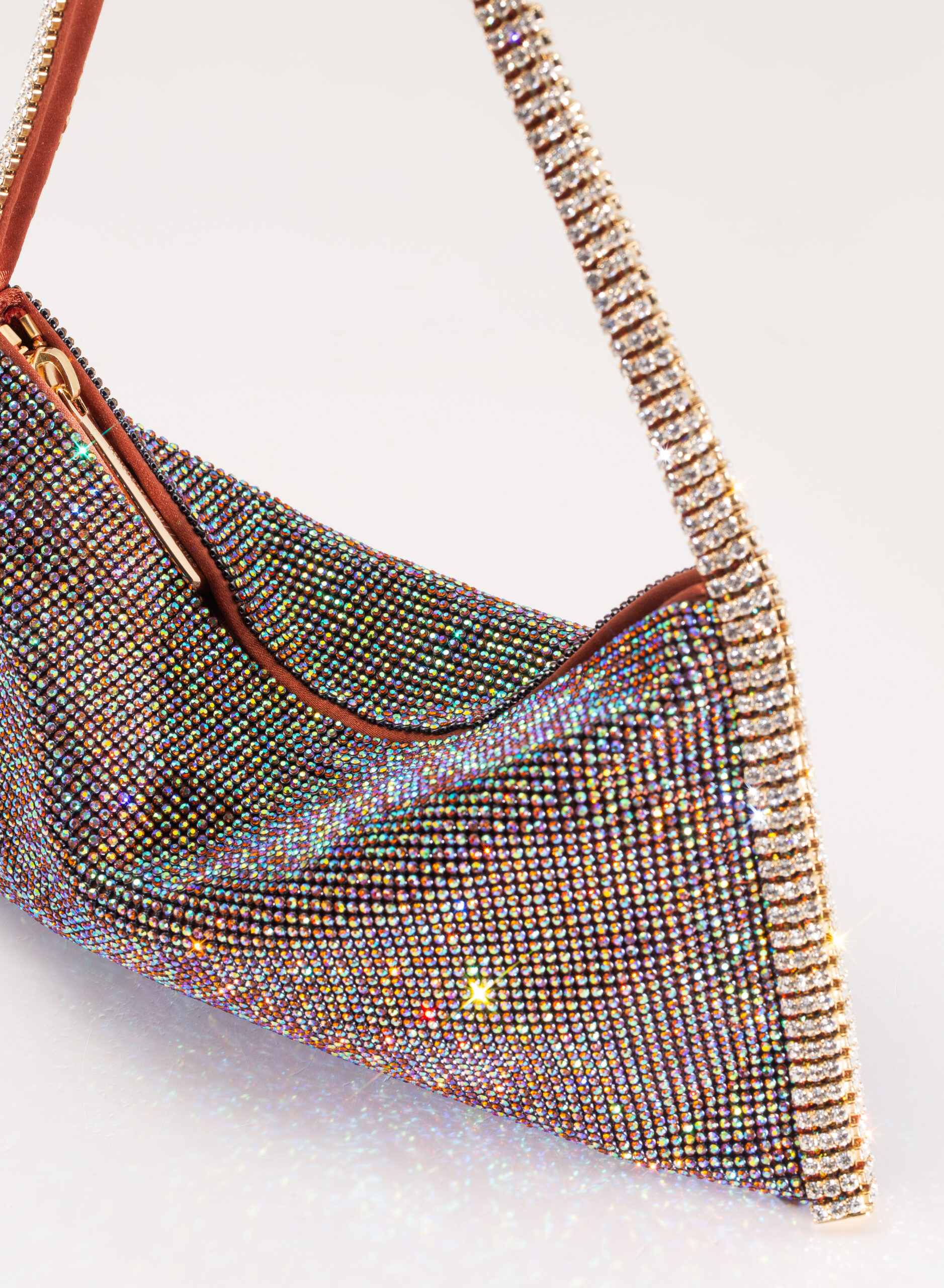 Have you ever waited for an important answer, one that could change your life or even just your day? Well, finding a real friend is being answered that question “Everything went well!”. Your Best Friend doesn’t care if you’re an aristocrat or an ordinary citizen, if you live in a villa or a studio, if you drive a luxury car or a utility car. How many people can you say that for? Designed to keep only what is really important, it is a mini clutch made with a soft net of crystals lined with organic silk satin, entirely hand-sewn. An elegant crystal shoulder strap allows you to wear it on the shoulder.