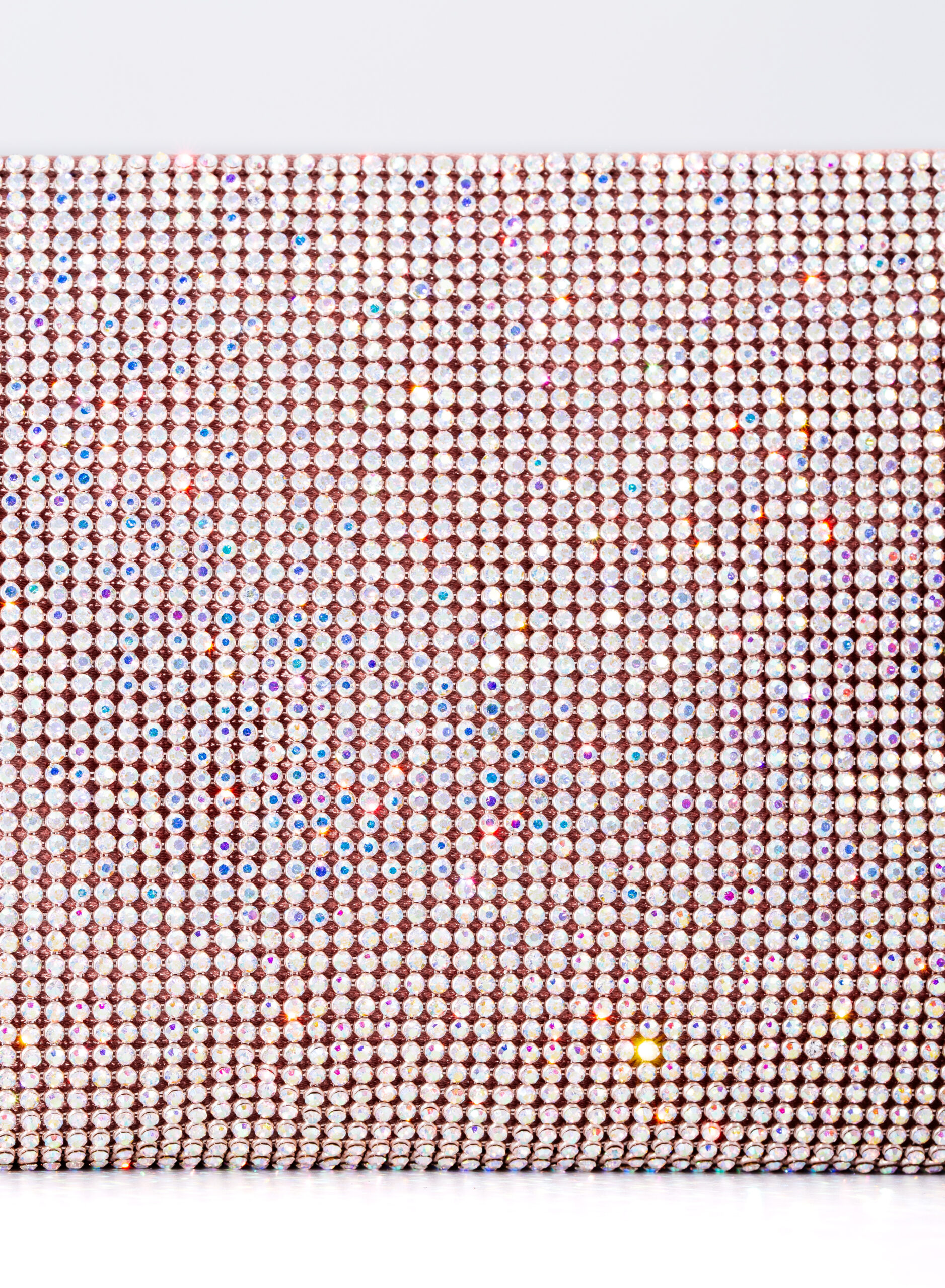 External: 100% alluminium mesh studded with crystal rhinestones