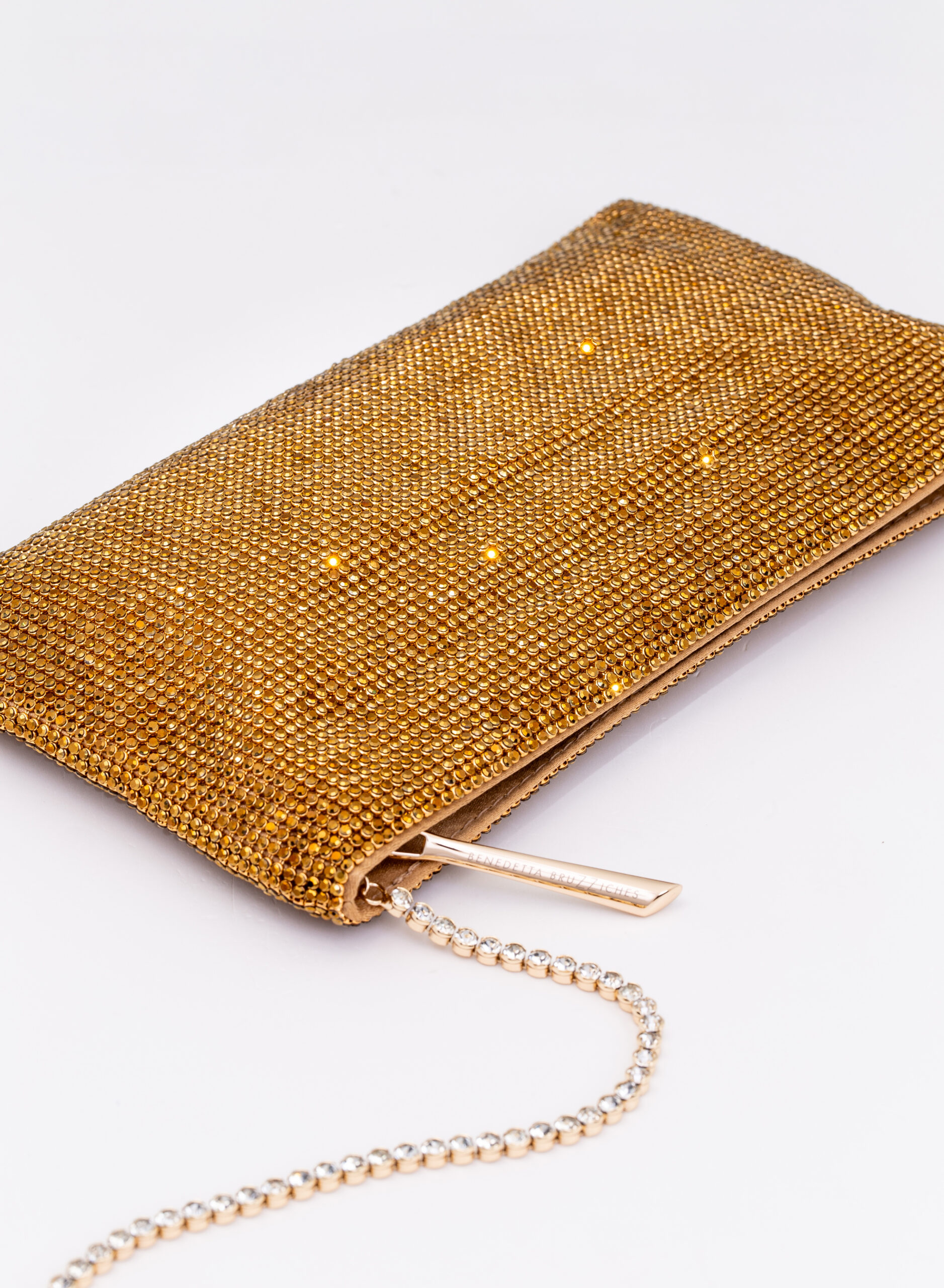External: 100% alluminium mesh studded with crystal rhinestones